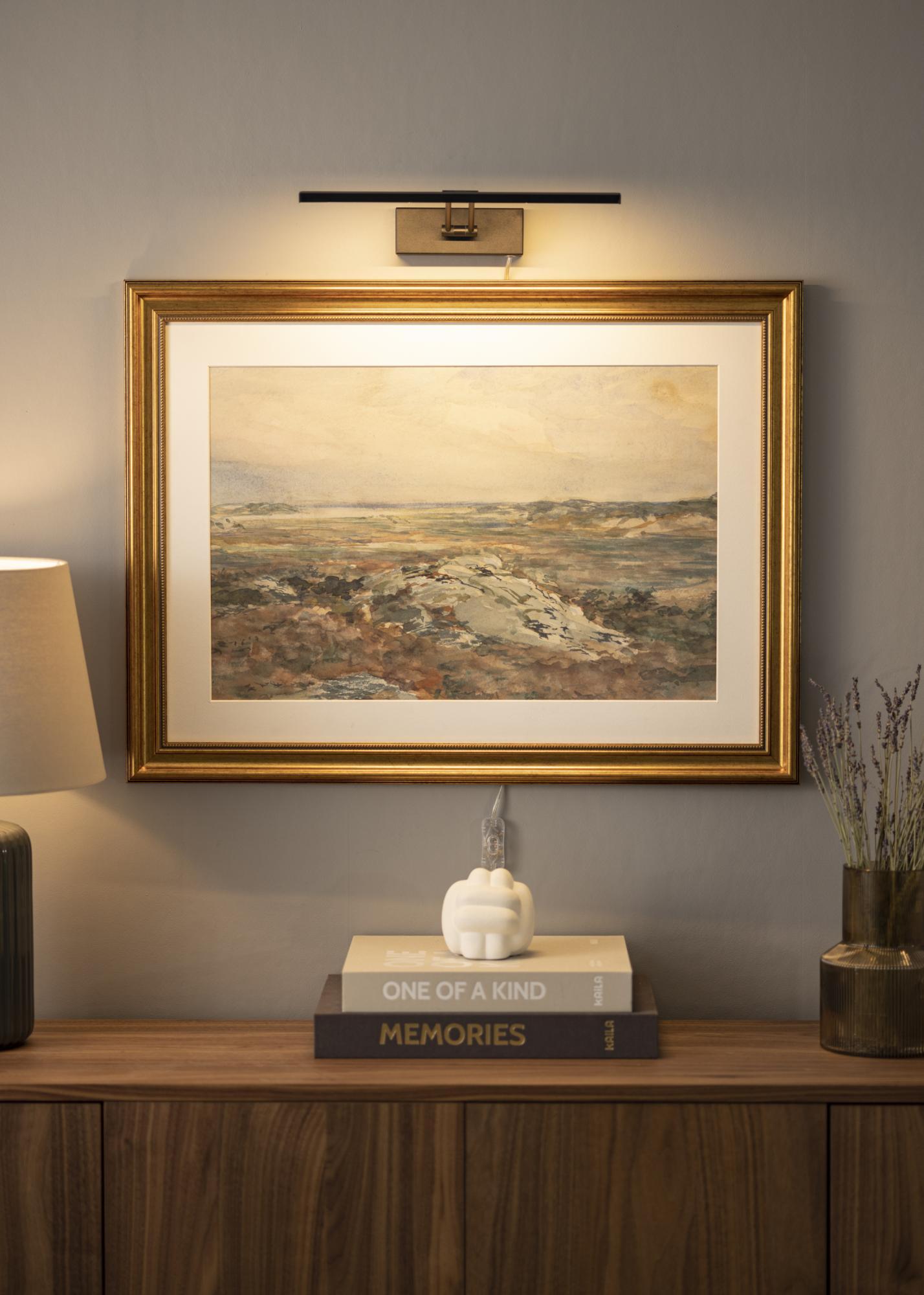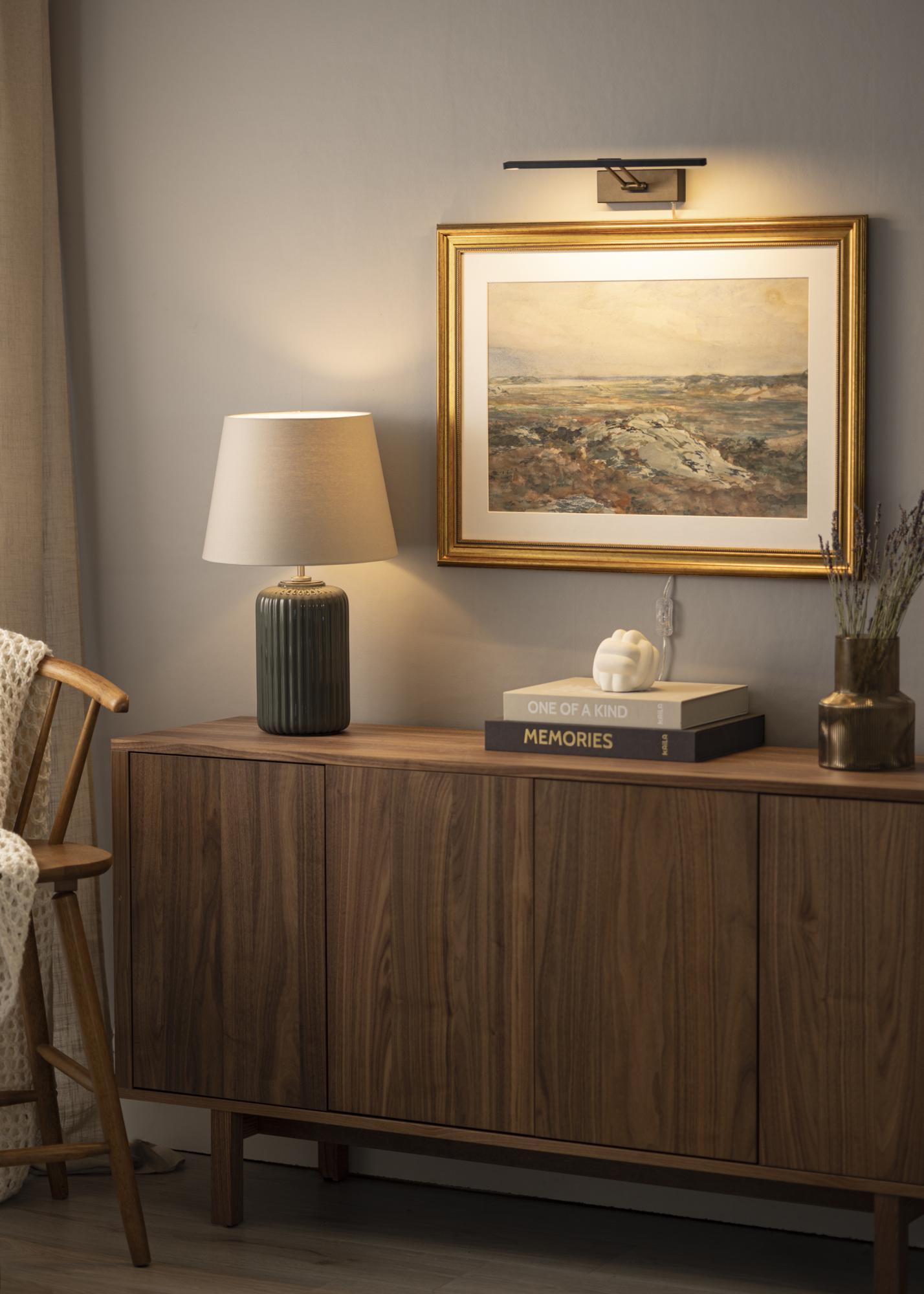 Rasvjeta za slike u modernom švedskom dizajnu koja odgovara slikama širine 60-100 cm. Svjetiljka ima visinu od 5 cm i dužinu od 37 cm s udaljenošću do zida od 20 cm. Sa svojim snažnim LED osvjetljenjem od 720 lumena dobivate ugodno osvjetljenje čak i na većim slikama.