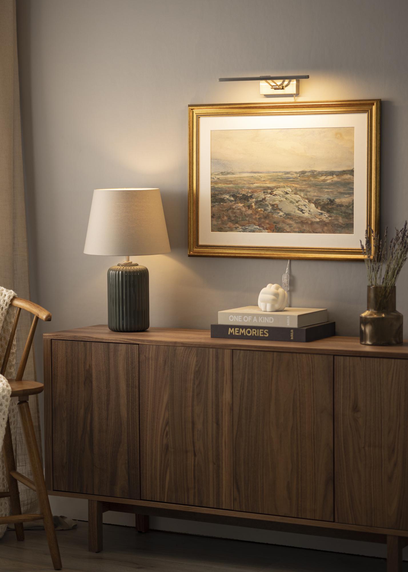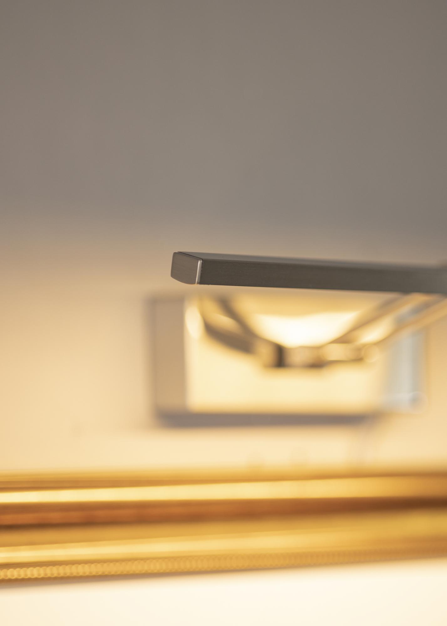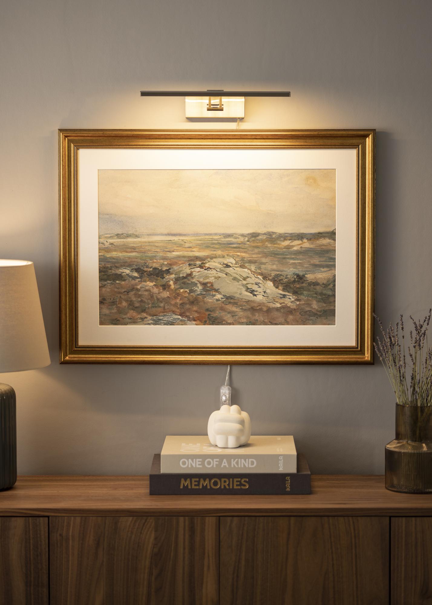 Rasvjeta za slike u modernom švedskom dizajnu koja odgovara slikama širine 60-100 cm. Svjetiljka ima visinu od 5 cm i duljinu od 37 cm s udaljenosti do zida od 20 cm. Sa svojim jakim LED osvjetljenjem od 720 lumena dobivate ugodno osvjetljenje čak i na većim slikama.