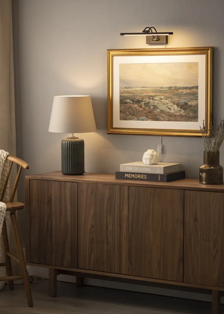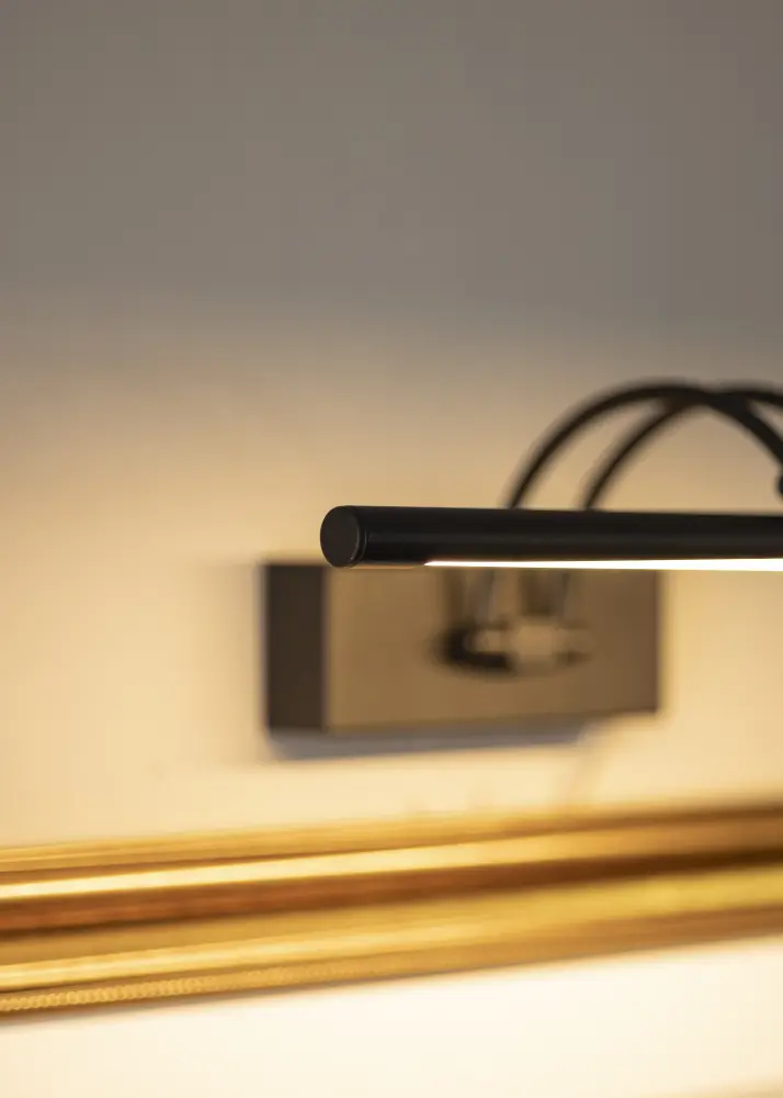 Osvjetljenje za slike u modernom švedskom dizajnu koje odgovara slikama sa širinom od 60-100 cm. Svjetiljka ima visinu od 5 cm i dužinu od 37 cm, s udaljenošću od zida od 20 cm. Sa svojom snažnom LED rasvjetom od 720 lumena dobit ćete ugodno osvjetljenje čak i na većim slikama.
