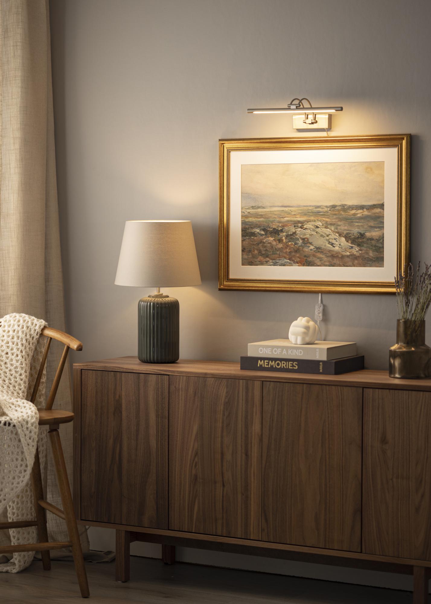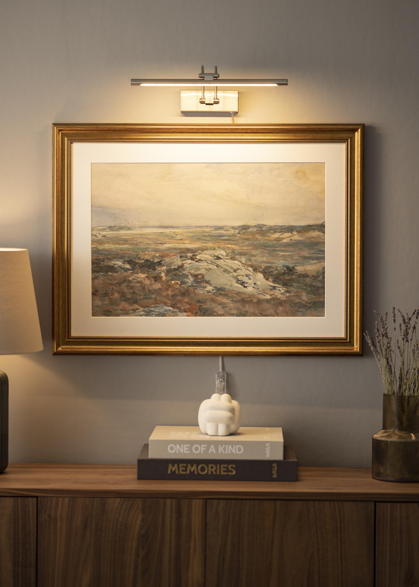 Osvjetljenje za slike u modernom švedskom dizajnu koje odgovara slikama širine 60-100 cm. Lampa ima visinu od 5 cm i duljinu od 37 cm s udaljenosti od zida od 20 cm. Sa svojim snažnim LED osvjetljenjem od 720 lumena dobivate ugodno osvjetljenje čak i na većim slikama.