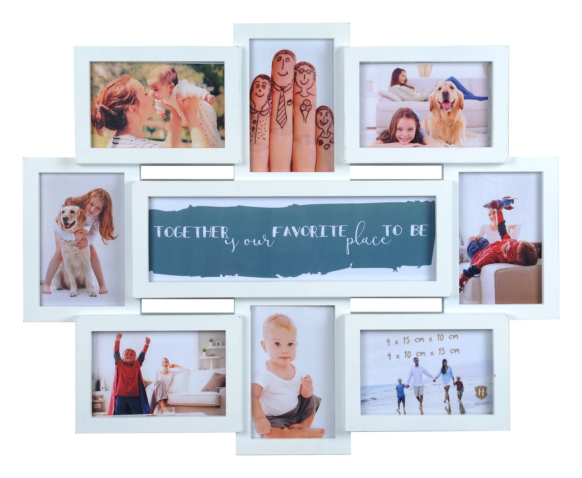 Skupi svoje najljepše fotografije u elegantan okvir za kolaže! Ovaj okvir nije samo ugodan za pogled, već ga možete i preurediti! Naime, dolazi s 5 slatkih tekstova s različitim temama koje možete staviti u središnji (9.) okvir i zamijeniti ih kad god želite. Na primjer, možete umetnuti tekstove poput "Sve što ti treba je ljubav" ili "Reci da obitelji". Okvir za kolaže dostupan je u crnoj i bijeloj boji.