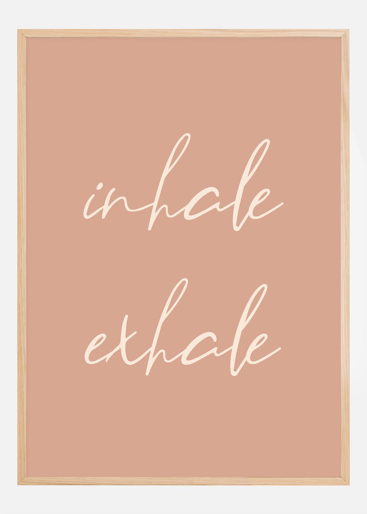Ovaj čisti i smirujući poster, s riječima "udahnuti" i "izdahnuti" elegantno napisanima, poziva na smirenost i refleksiju u bilo kojem prostoru gdje je postavljen. Stalni je podsjetnik na snagu disanja i unutarnji mir koji se može postići svjesnom prisutnošću. Mekana pozadinska boja u prigušenoj ružičastoj daje opuštajući i terapeutski dojam koji upotpunjuje lepršave, rukom napisane riječi.