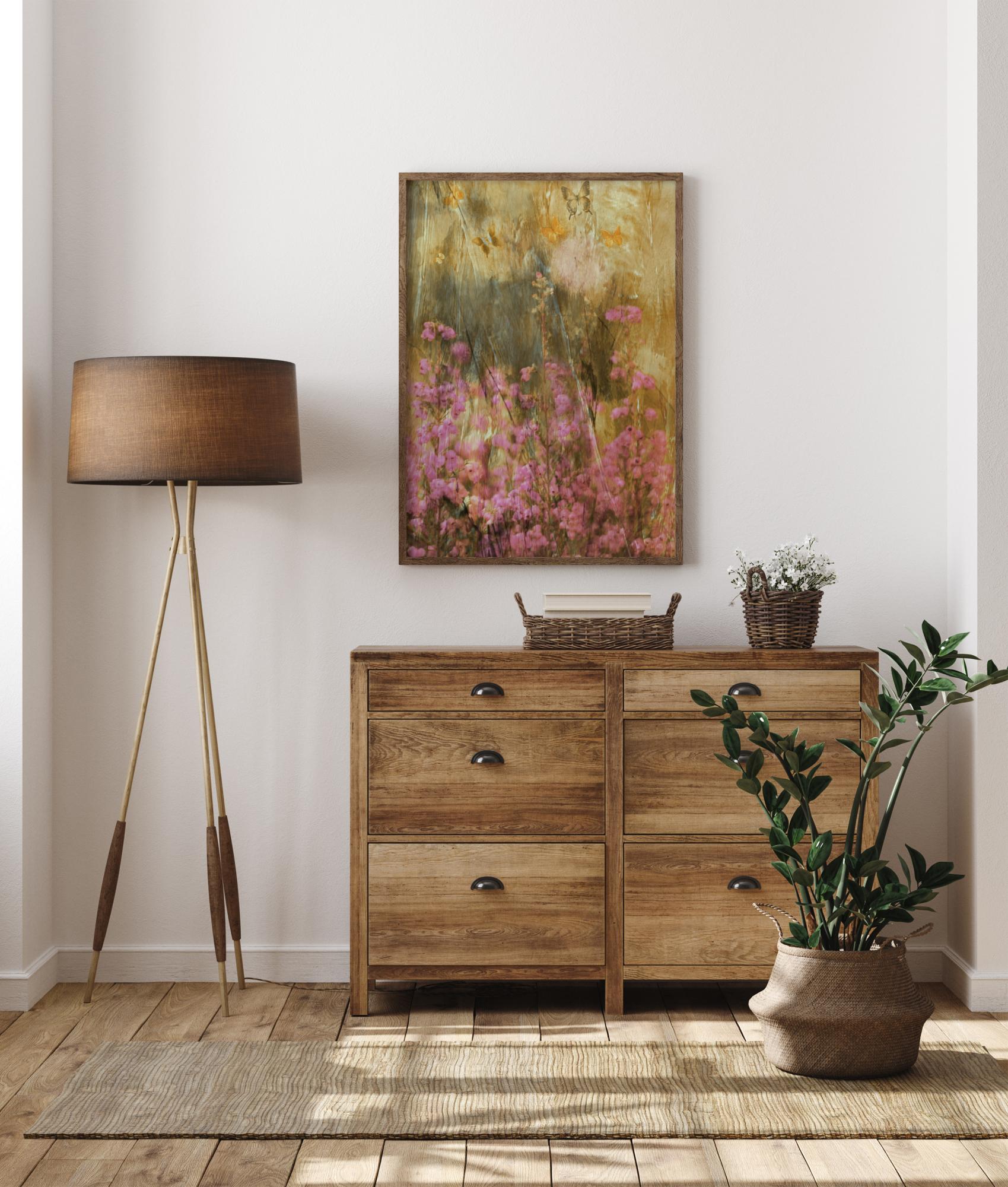 Prekrasan poster s prirodnim motivima koji prikazuje proljeće s ružičastim i smeđim osušeni travama na polju. Mekane pastelne boje daju opuštajući i miran osjećaj. Mekani, ružičasti pastelni cvjetovi ispunjavaju sliku s prekrasnim smeđim leptirima koji lete u pozadini. Ovo je divna slika za svaku prostoriju u kući ako cijenite prirodu.