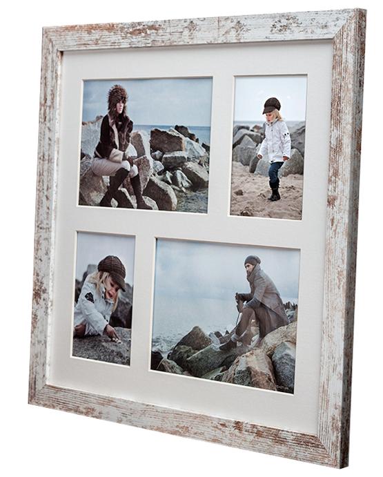 Elegantan vintage okvir s širokim profilom okvira s istrošenim izgledom u bijeloj boji i drvu. Dodaje dodatnu dimenziju vašim slikama i savršeno odgovara kada želite istinski osjećaj vintagea. Kolažni okvir ima prostor za 4 slike različitih veličina.