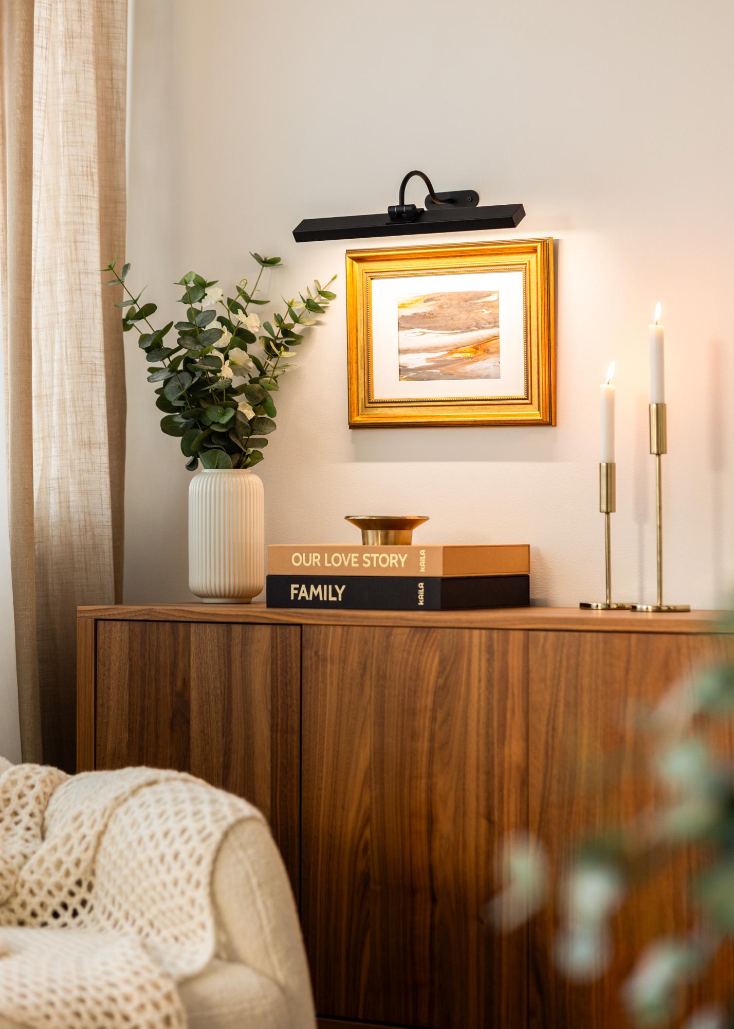 Dajte svojim umjetničkim djelima pažnju koju zaslužuju s KAILA Flare – elegantnim i baterijski napajanom rasvjetom za slike u crnoj boji. Zahvaljujući bežičnom dizajnu, možete postaviti rasvjetu slobodno bez brige o električnim utičnicama ili vidljivim kabelima. Elegantna, crna završna obrada daje moderan dojam, dok podesiva svjetlosna ruka olakšava usmjeravanje svjetla kako bi istaknula detalje i boje na najbolji način. Jednostavna za montiranje i laka za korištenje – praktično i elegantno rješenje za vašu zidnu umjetnost.