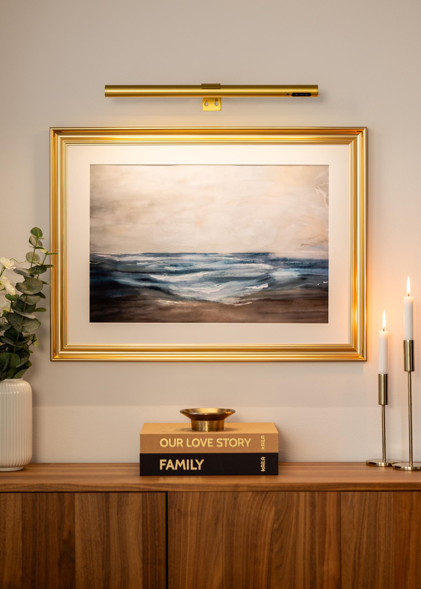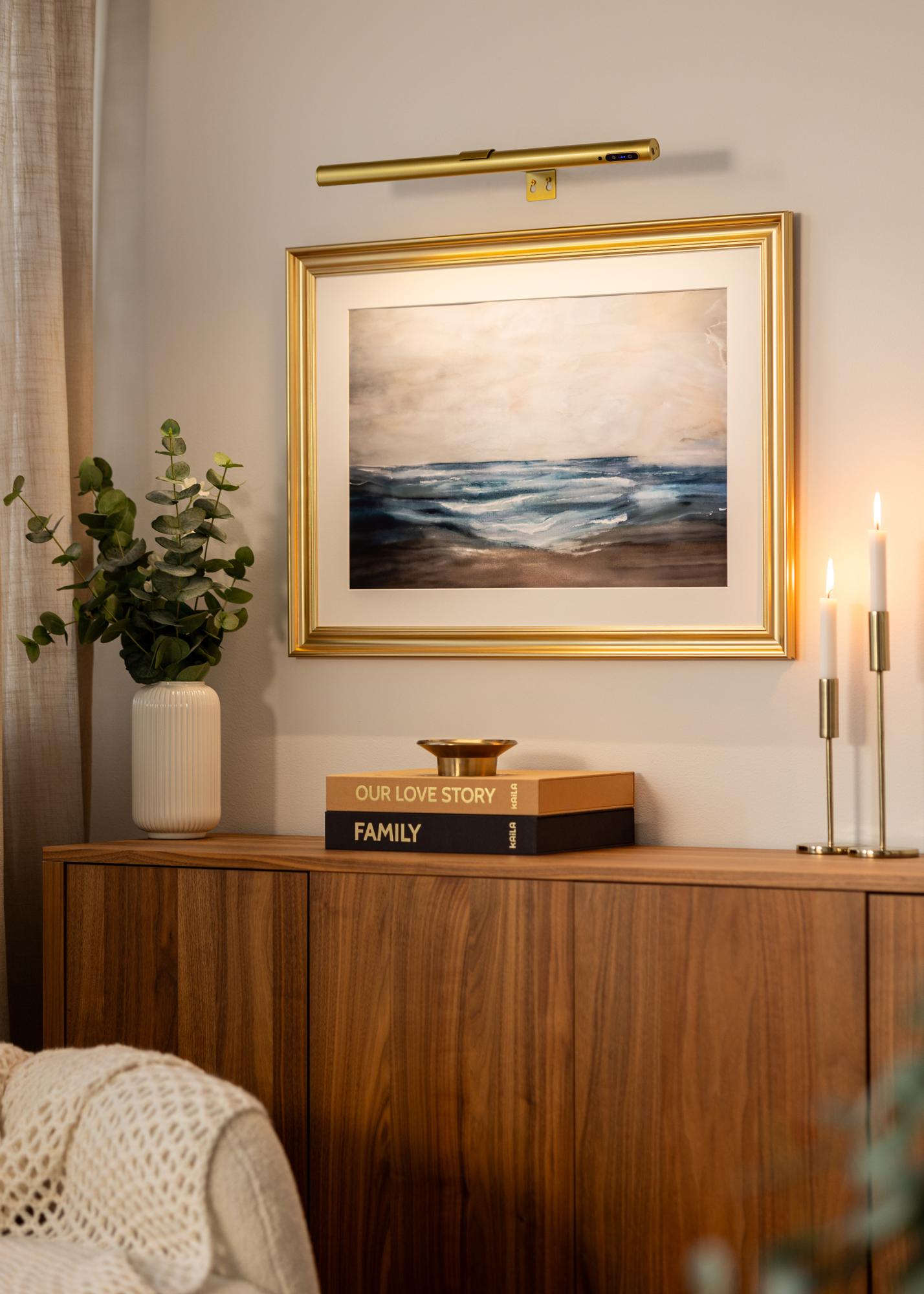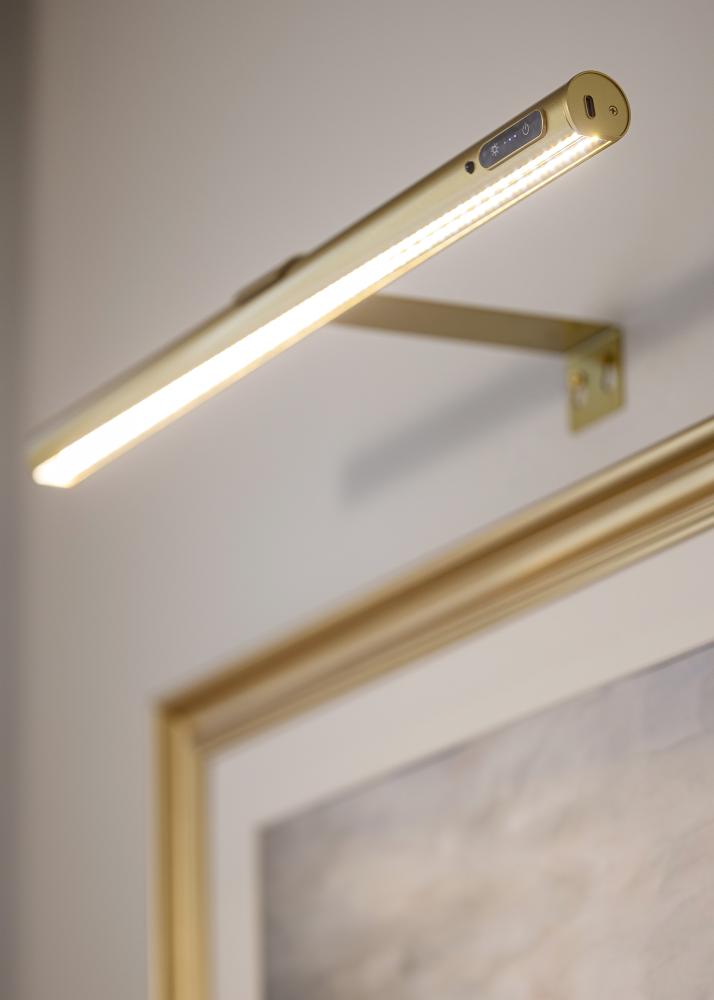 KAILA Halo je elegantna i baterijska rasvjeta za slike u zlatu, savršena za osvjetljavanje vaših umjetničkih djela bez ometajućih kabela. Zahvaljujući bežičnom dizajnu, možete je postaviti bilo gdje bez obzira na električne utičnice. Elegantna zlatna završna obrada daje ekskluzivan izgled, dok se svjetlo ravnomjerno raspršuje kako bi naglasilo detalje i boje na lijep način. Jednostavna za montažu i praktična za korištenje – praktično rješenje za davanje vašim slikama pažnje koju zaslužuju.