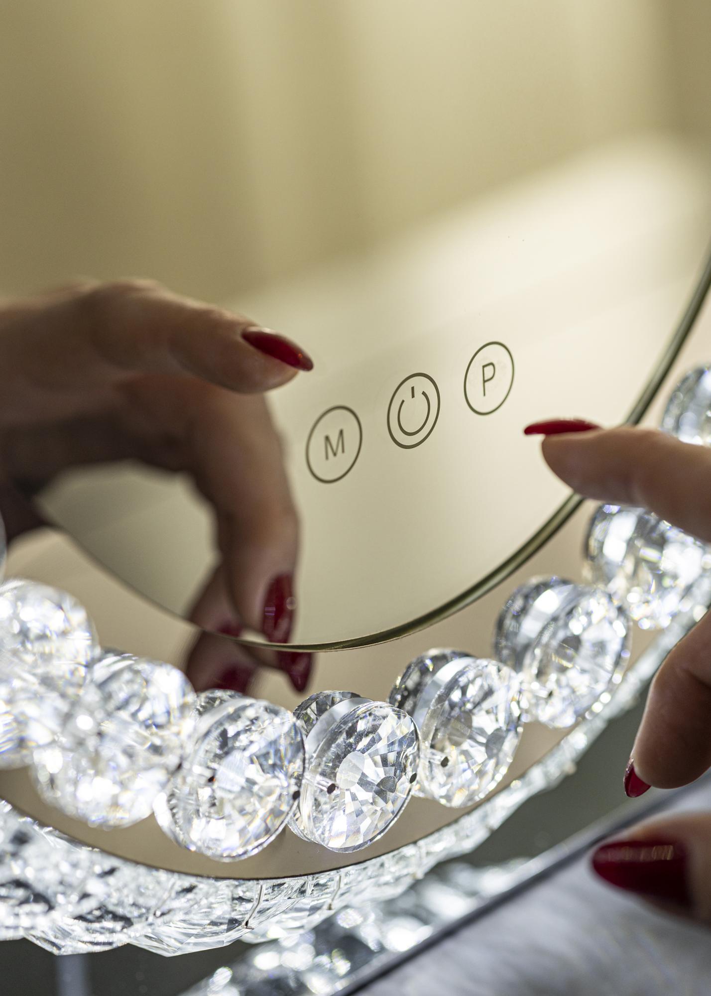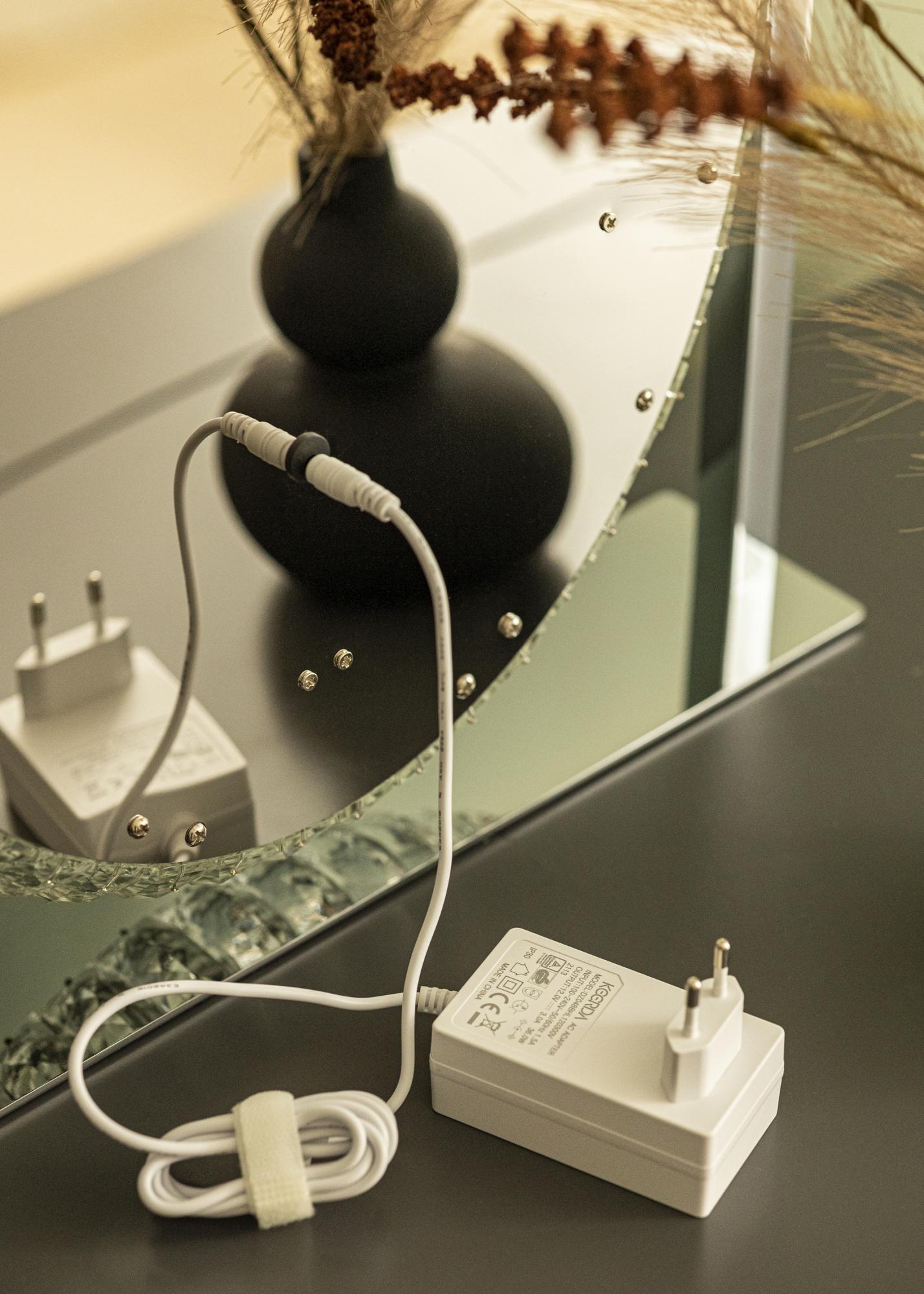 UgraÄeno LED osvjetljenje pruža ugodnu svjetlost – savrÅ¡eno kada nanosite Å¡minku i pripremate se za dan. TakoÄer možete prilagoditi svjetlost pomoÄu dodirnih gumba na donjem rubu ogledala. PomoÄu gumba "M" možete promijeniti temperaturnu boju osvjetljenja, a pomoÄu gumba "P" možete priguÅ¡iti svjetlost do željene jaÄine. Postoji i gumb za ukljuÄivanje/iskljuÄivanje kako biste upalili i ugasili osvjetljenje ogledala. PrikljuÄivanje na struju vrÅ¡i se putem utikaÄa.
