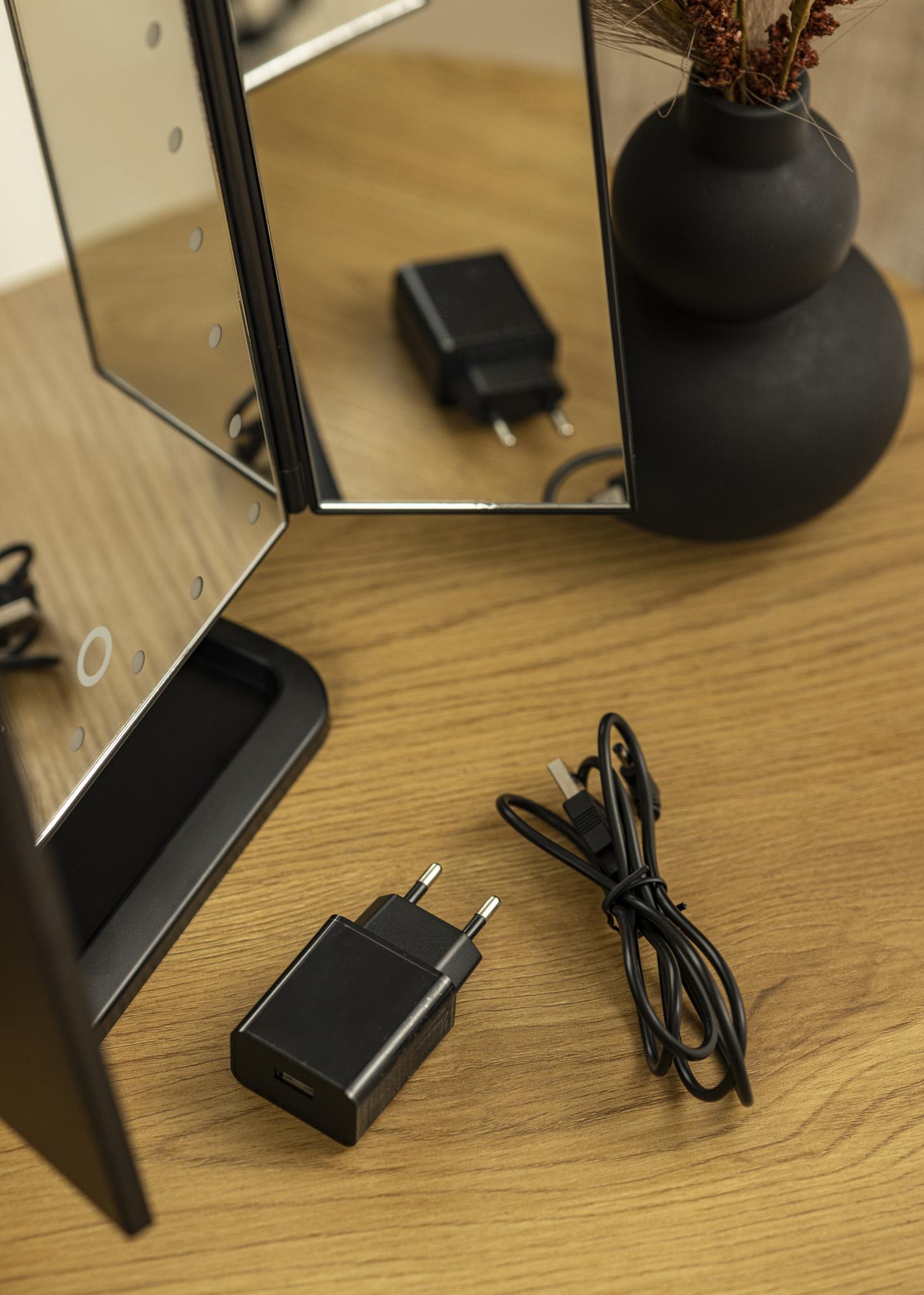 Ogledalo za šminkanje izrađeno je od ABS materijala za najbolju moguću kvalitetu, a LED izvor svjetlosti je prirodno svjetlo koje troši manje energije. Ogledalo se napaja s 4x AA baterijama (nisu uključene) ili se može puniti s priloženim USB zidnim adapterom i USB kabelom.