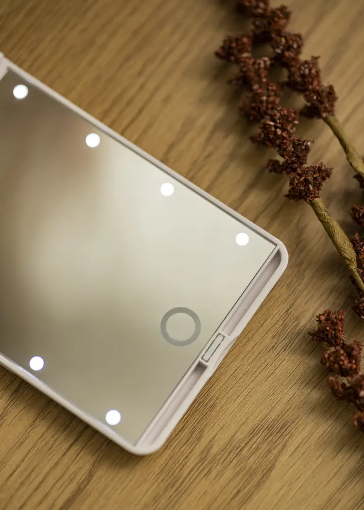 Prijenosno ogledalo mjeri 12x8 cm i teži samo 136 grama, Å¡to omoguÄava jednostavno spremanje ogledala za Å¡minkanje u džep, torbu ili neseser. PoveÄavajuÄe staklo zajedno s osvijetljenom povrÅ¡inom ogledala Äini ovo ogledalo savrÅ¡enim za bliski prikaz pri Äupanju obrva ili poboljÅ¡avanju Å¡minke!