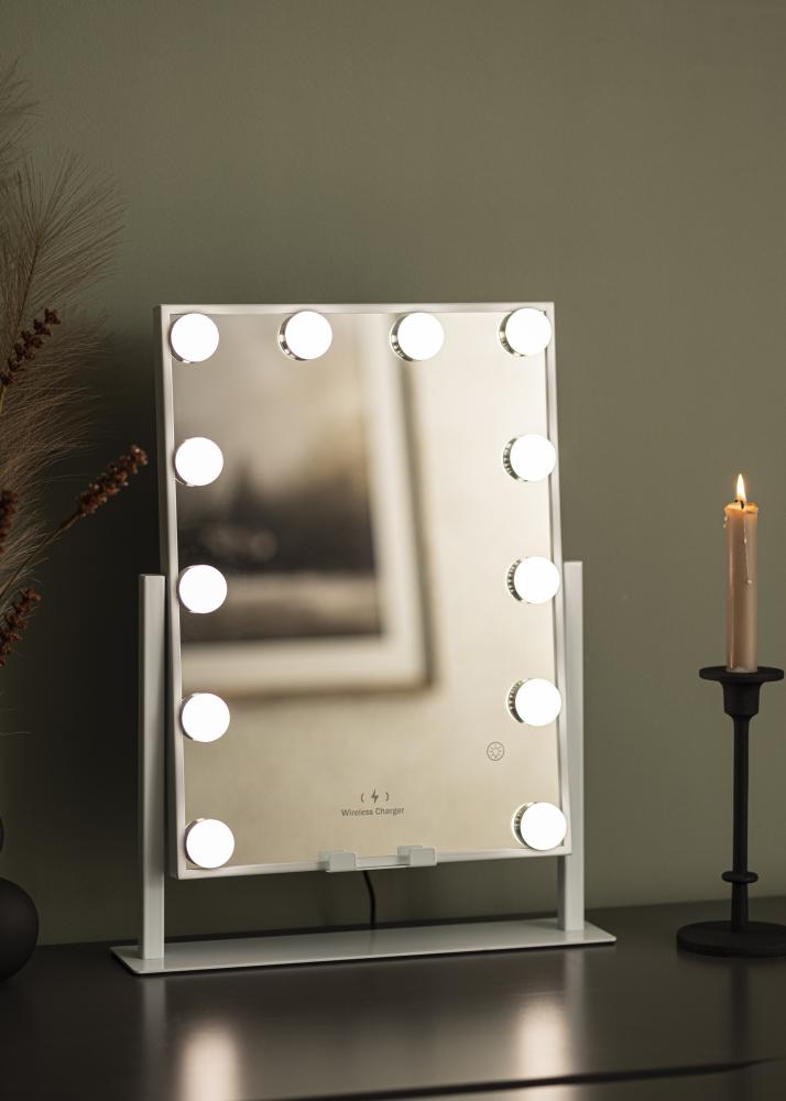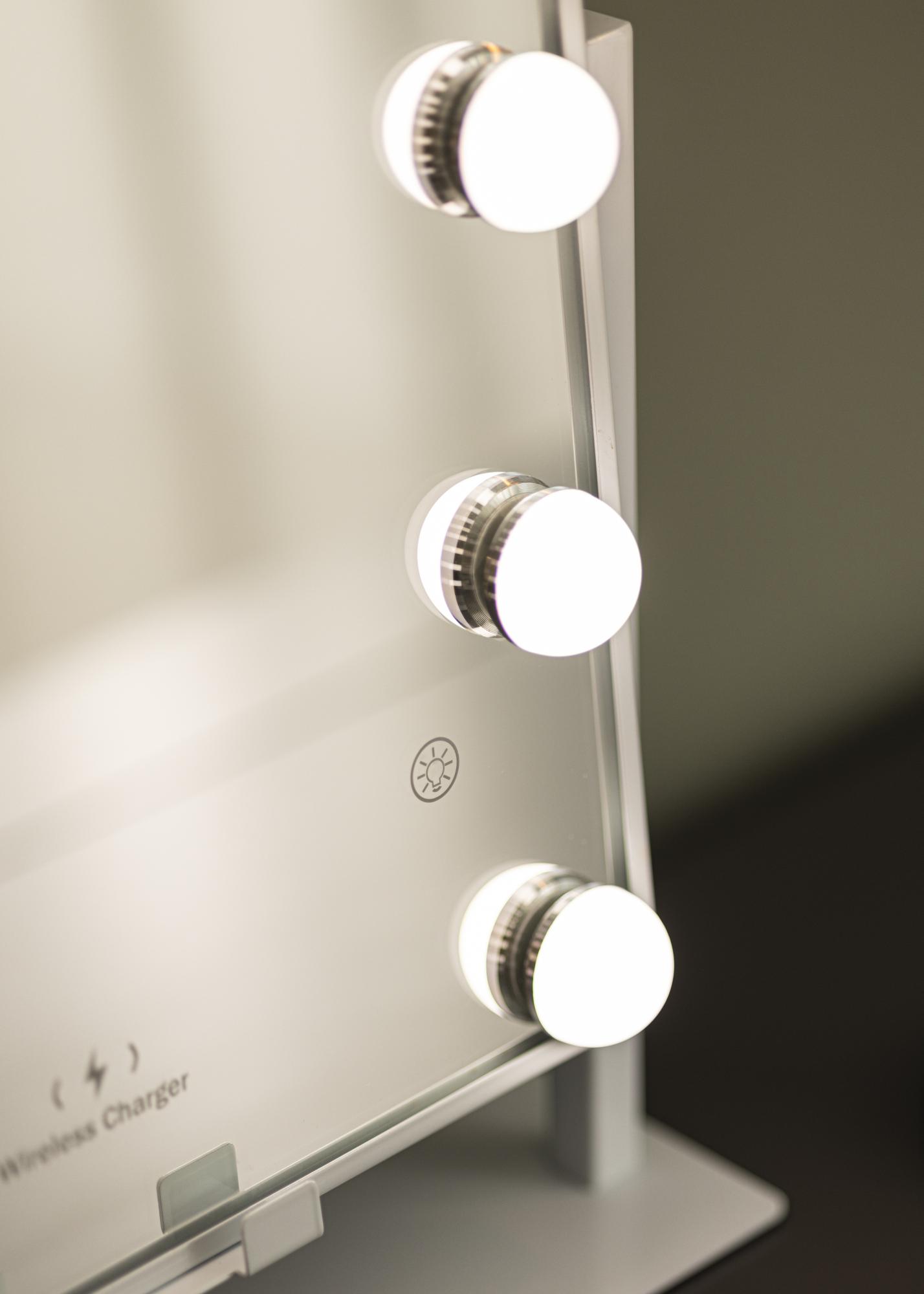 Ovo je elegantno ogledalo za Å¡minkanje s dodatnom luksuznom znaÄajkom – podržava bežiÄno punjenje vaÅ¡eg pametnog telefona! Kada je svjetlo upaljeno, postavite svoj ureÄaj na odreÄeno mjesto na ogledalu kako biste ga napunili sa 5V/2A (10W). To je izuzetno praktiÄno za užurbana jutra kada želite imati telefon blizu dok se ureÄujete ispred ogledala. Funkcija je dostupna za sve modele pametnih telefona koji podržavaju bežiÄno punjenje.