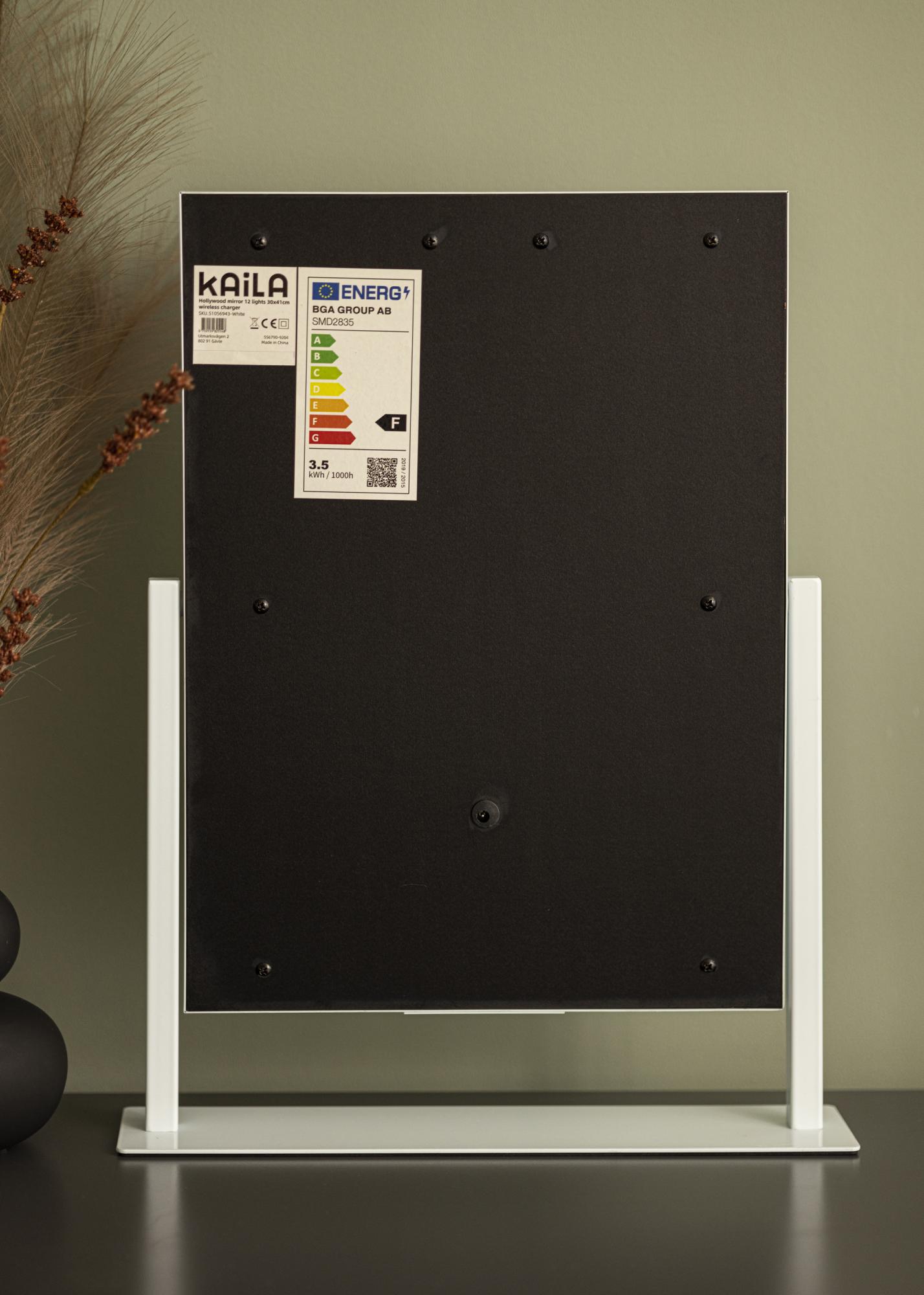 Uspravni dizajn s elegantnom bijelom nijansom je veoma stiliziran, dok vam pametna konstrukcija omoguÄava nagibanje povrÅ¡ine ogledala. Ogledalo je opremljeno LED rasvjetom u obliku 12 lampi koje okružuju povrÅ¡inu ogledala veliÄine 30x41 cm. LED rasvjeta je podesiva i za postavljanje svjetline držite touch-tipku na ogledalu nekoliko sekundi. ElektriÄni prikljuÄak se vrÅ¡i putem utiÄnice.