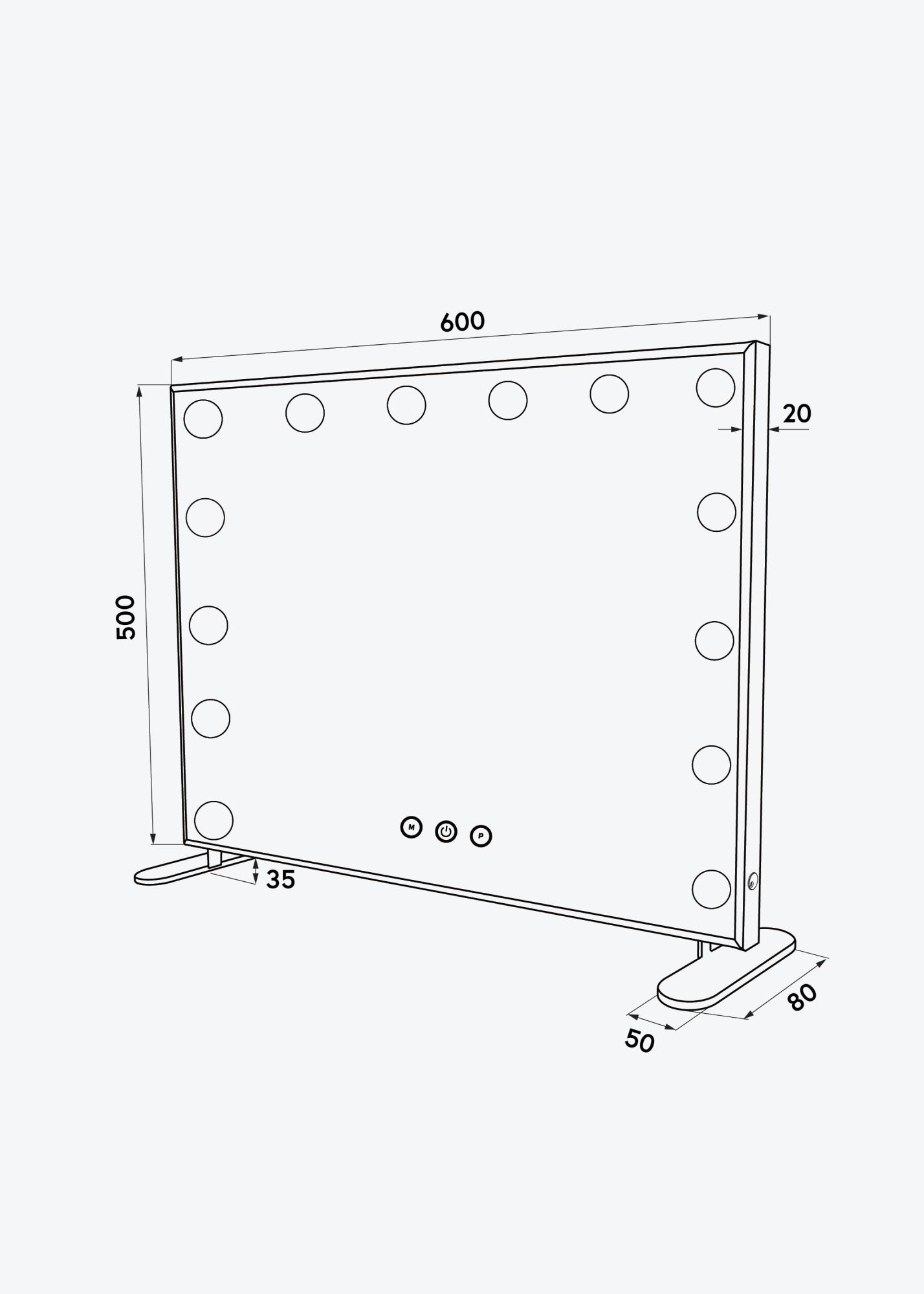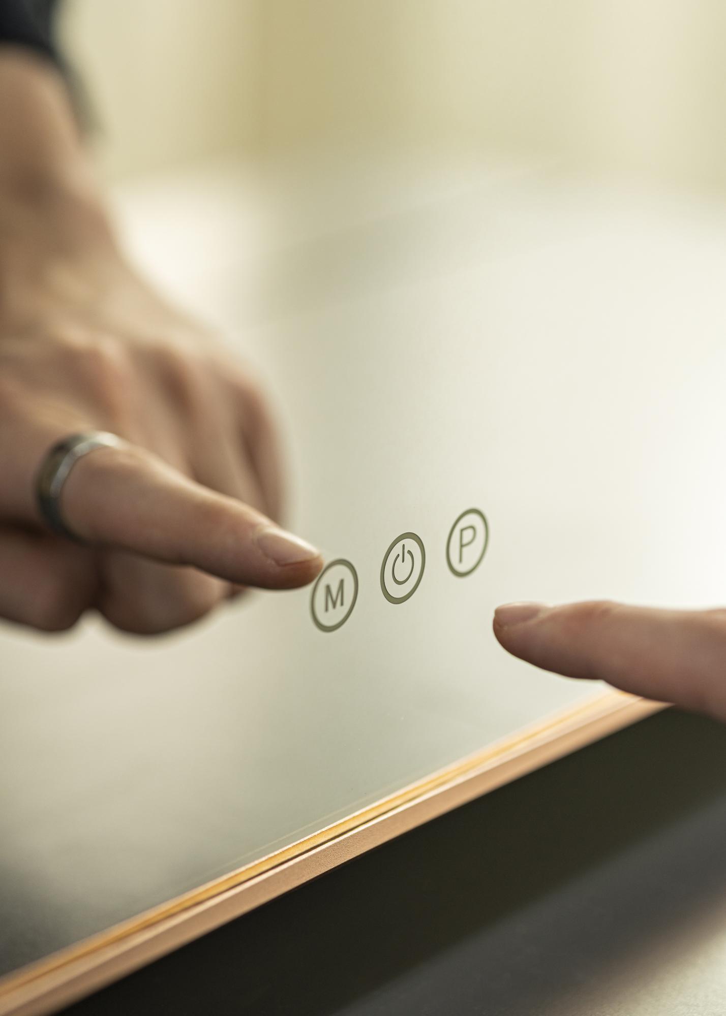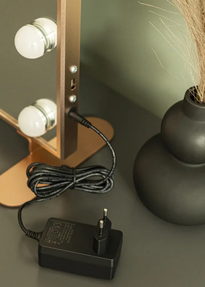LED rasvjeta je podesiva, a za promjenu postavki svjetla koristite se touch gumbima na donjem rubu ogledala. Gumb "M" mijenja temperaturu boje, a gumb "P" postavlja osvjetljenje. Postoji i gumb za paljenje i gašenje rasvjete. Fleksibilna rasvjeta čini ovo ogledalo pogodnim i za dnevni boravak kada želite mekšu pozadinsku rasvjetu i za kutak za šminkanje kada želite jako svjetlo koje vam pomaže da se usredotočite. Ogledalo je također opremljeno USB priključkom, tako da lako možete puniti svoje pametne uređaje.