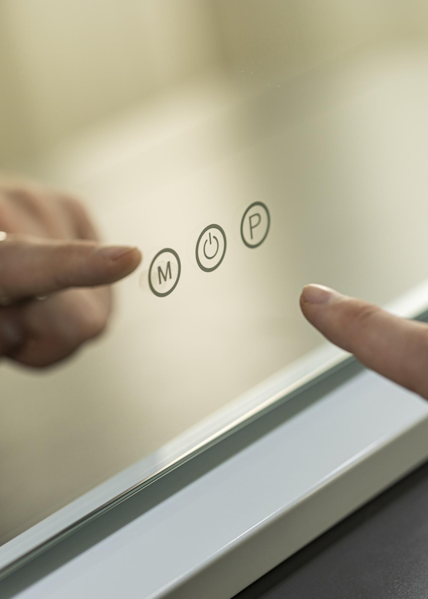 Ogledalo se može objesiti na zid u horizontalnom položaju ili čvrsto montirati na priloženo postolje. Ovaj model ima elegantno bijelo postolje koje povećava eleganciju cijelog izgleda ogledala. Električno priključenje vrši se putem utičnice.