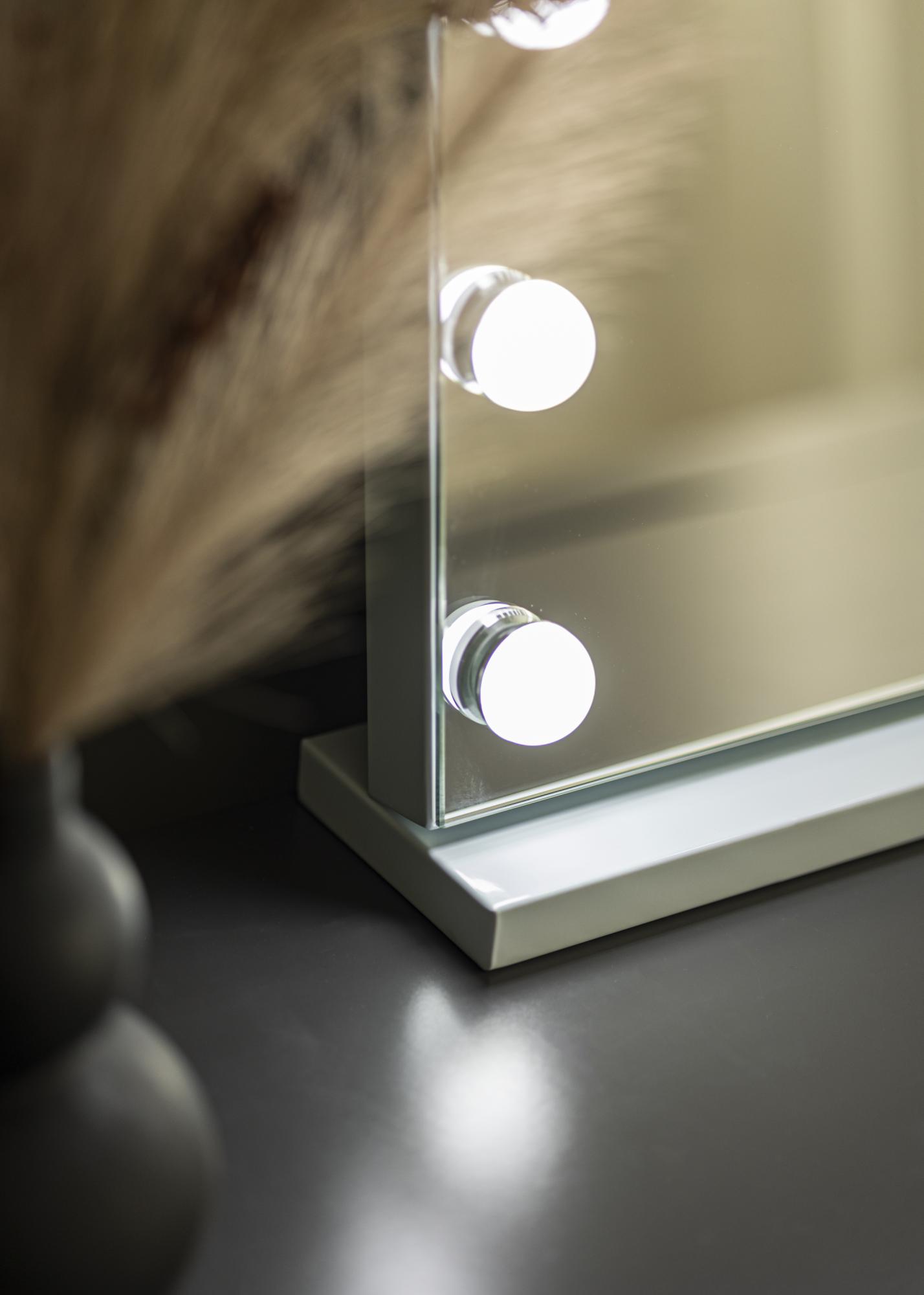 Kreirajte luksuzan i funkcionalan kutak za šminkanje s našim elegantnim ogledalom s osvjetljenjem. Ovo ogledalo je oblikovano u elegantnom pravokutnom obliku i opremljeno ugrađenom rasvjetom koja pruža ravnomjerno i ugodno svjetlo, savršeno za vašu svakodnevnu rutinu šminkanja. Moderan dizajn čini da ogledalo ne samo poboljšava vaš kutak za šminkanje, već također služi kao privlačan dekorativni element. Možete ga postaviti u dnevni boravak ili hodnik kako biste dodali stiliziranu pozadinsku rasvjetu. Osvjetljenje ogledala, koje se sastoji od 15 prigušivih LED lampi, okružuje veliku površinu ogledala od 58x46 cm. Svjetlina i temperatura boje lako se podešavaju pomoću dodirnih tipki na prednjoj strani ogledala, označenih s "P" za svjetlinu i "M" za temperaturu boje, što omogućuje lako prilagođavanje rasvjete vašim potrebama.