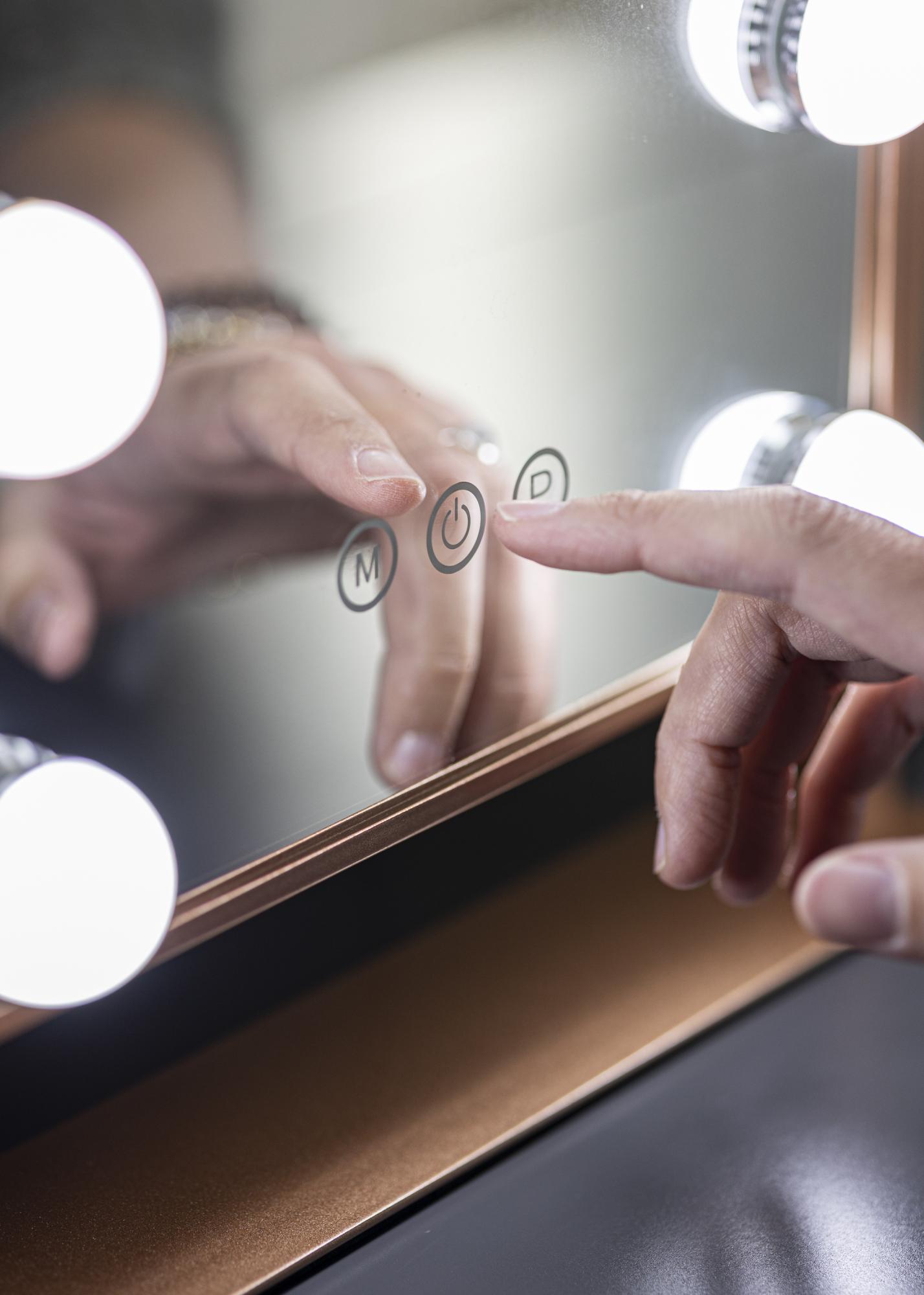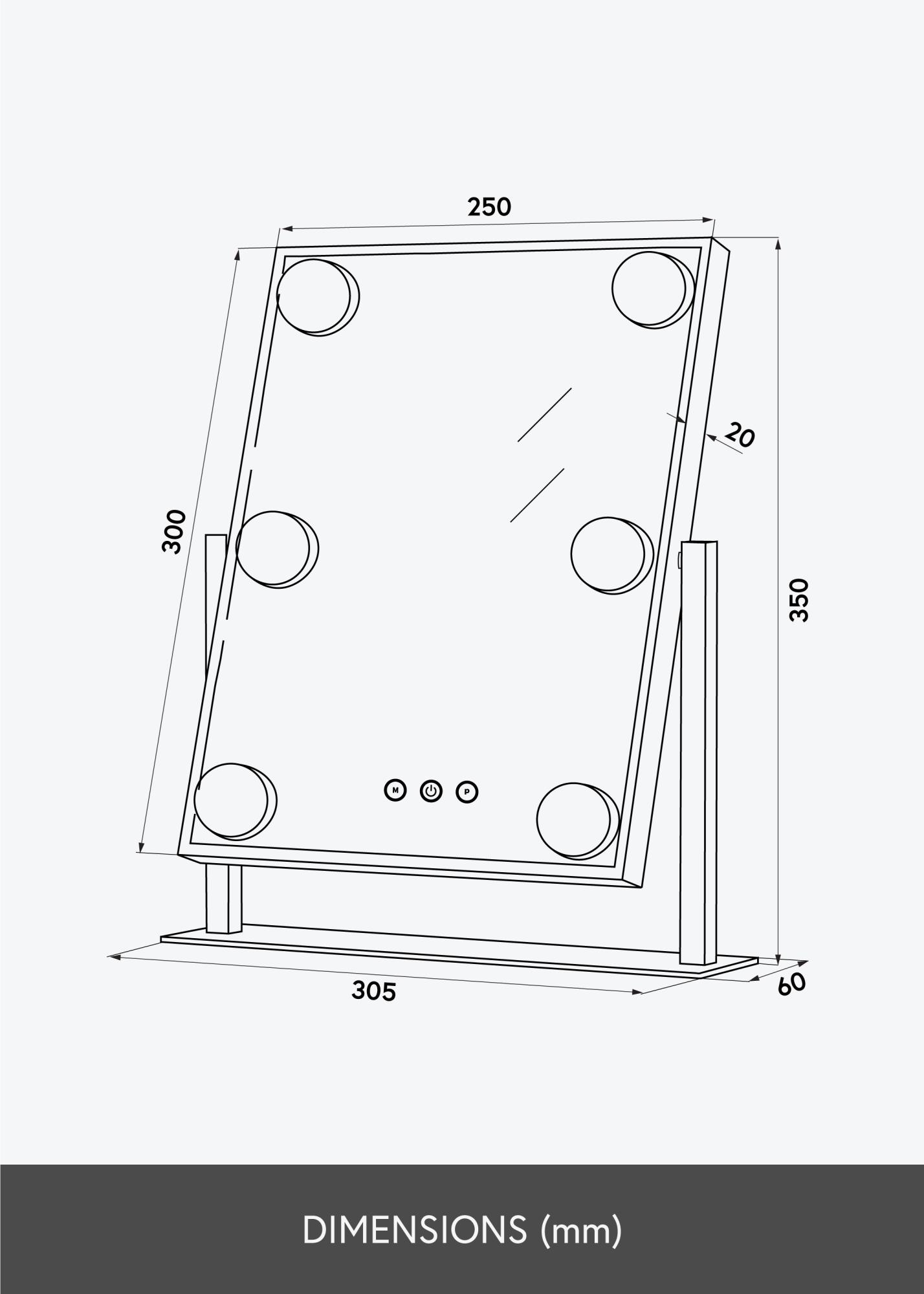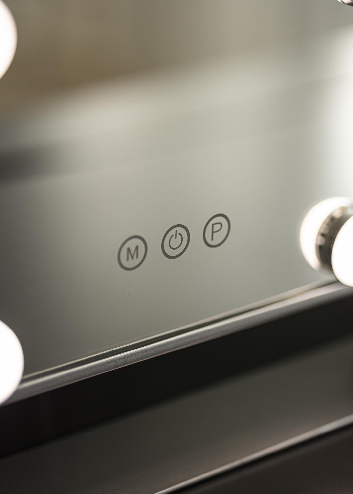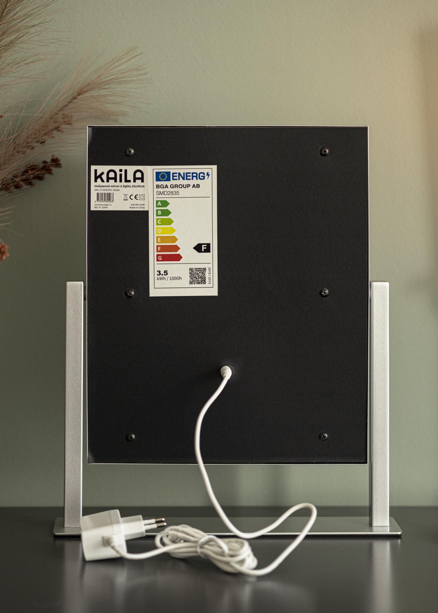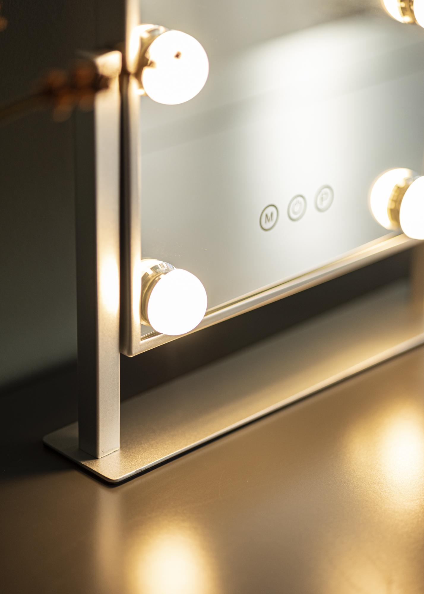 Ovo ogledalo za šminkanje iz KAILA dodaje stil i glamur vašem domu! Njegova kompaktna veličina omogućuje da se dobro uklopi u spavaću sobu ili dnevni boravak, ovisno o tome gdje više volite nanijeti šminku i pripremiti se za dan. Ogledalo ima elegantnu srebrnu boju i opremljeno je s 6 LED svjetala koja stilski uokviruju površinu ogledala. Ogledalo ima tipke na dodir na prednjoj strani, kojima možete upaliti svjetlo i prilagoditi osvjetljenje. Tipka označena s "M" podešava temperaturu boje, a tipka označena s "P" podešava svjetlinu.