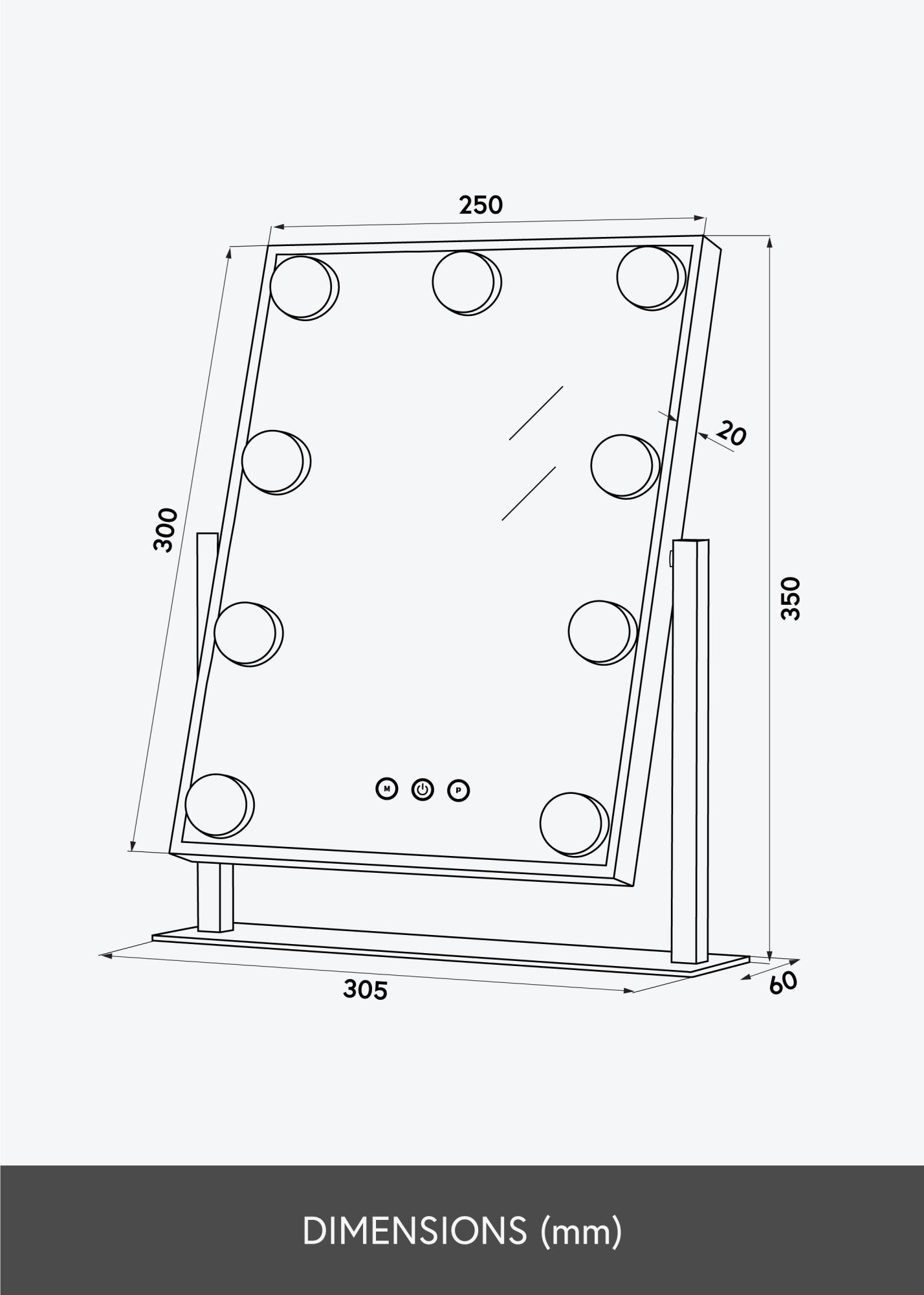 Dobijte pravi holivudski osjećaj s ovim ogledalom za šminkanje iz KAILA-e. Luksuzno ogledalo je podjednako elegantno koliko i praktično, s 9 LED lampi koje uokviruju površinu ogledala na vrlo sofisticiran način. Crna boja dodaje klasični osjećaj i omogućuje jednostavno usklađivanje ogledala s interijerom u različitim sobama.