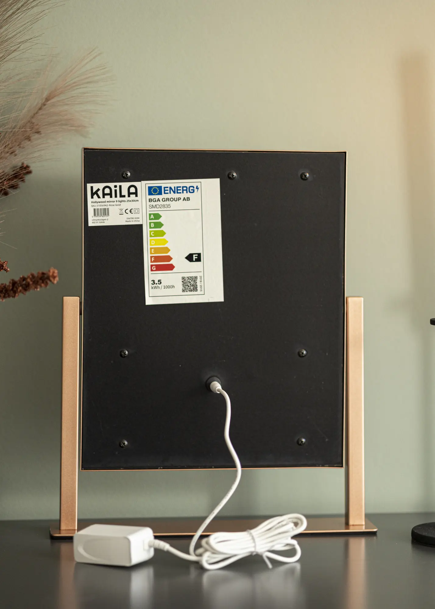 Tražite li elegantno ogledalo za šminkanje manjeg formata? Ovo ogledalo s inspiracijom iz Hollywooda ima kompaktnu veličinu s površinom ogledala od 25x30 cm, koja je lijepo uokvirena integriranim osvjetljenjem ogledala. Ima trendovsku nijansu ružičastog zlata, koja cijelom dizajnu daje dodatnu eleganciju.
