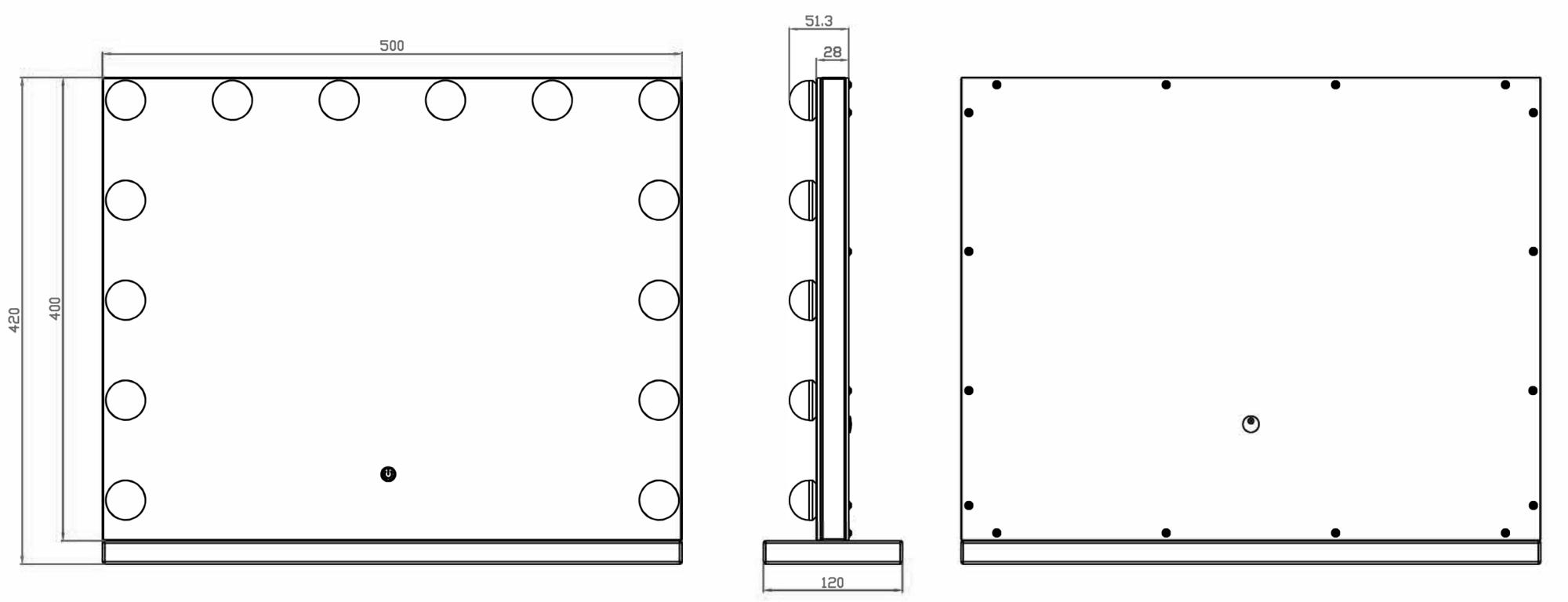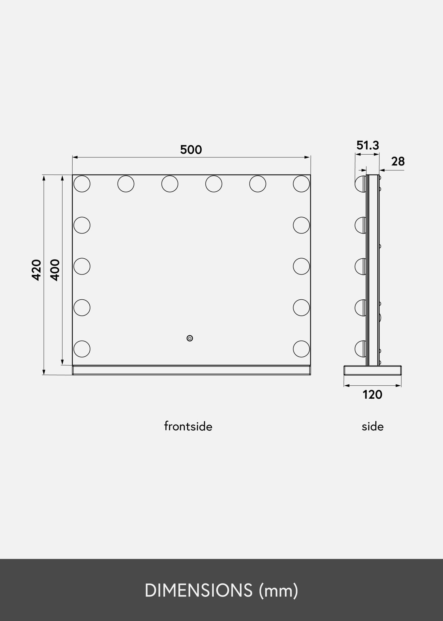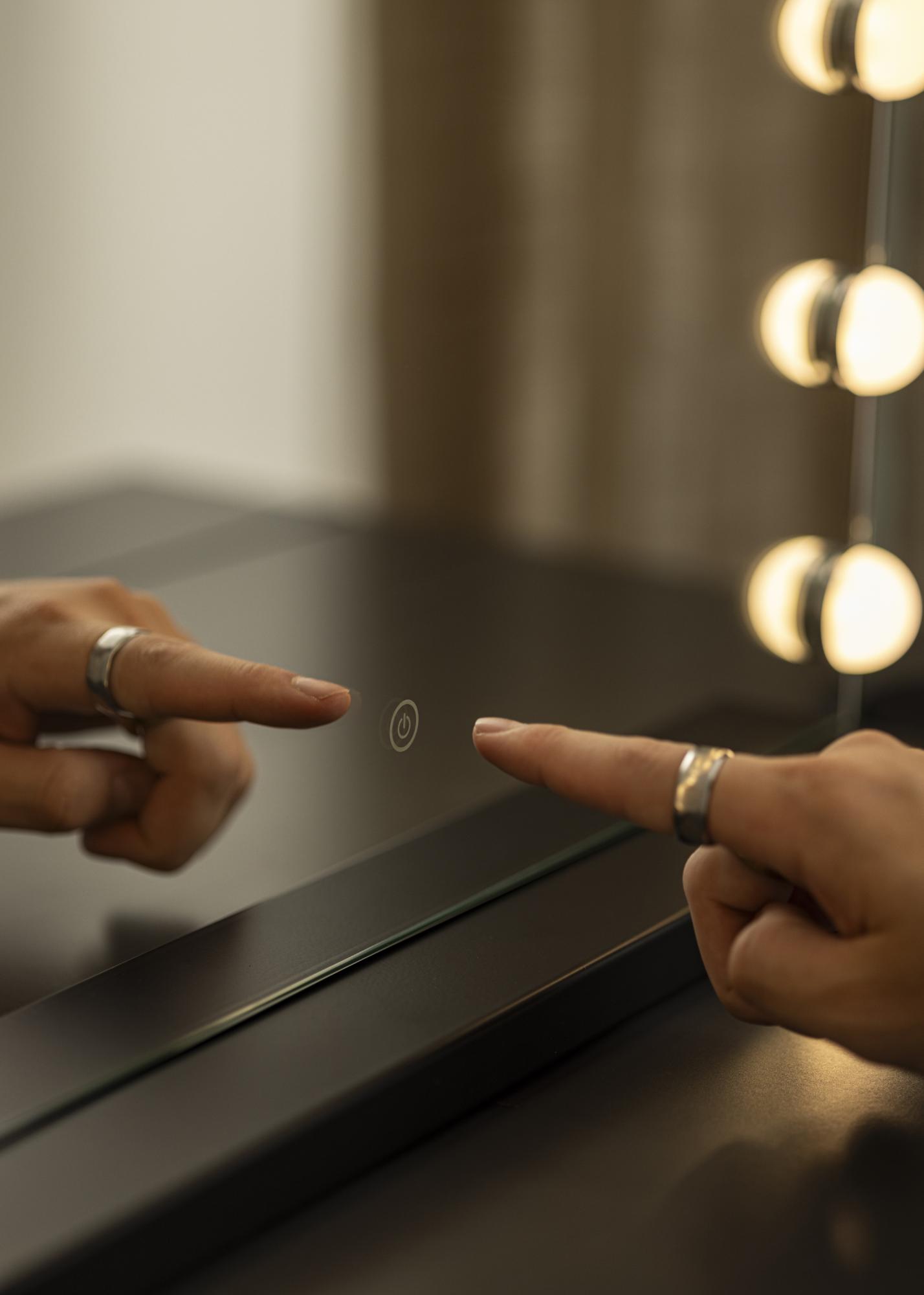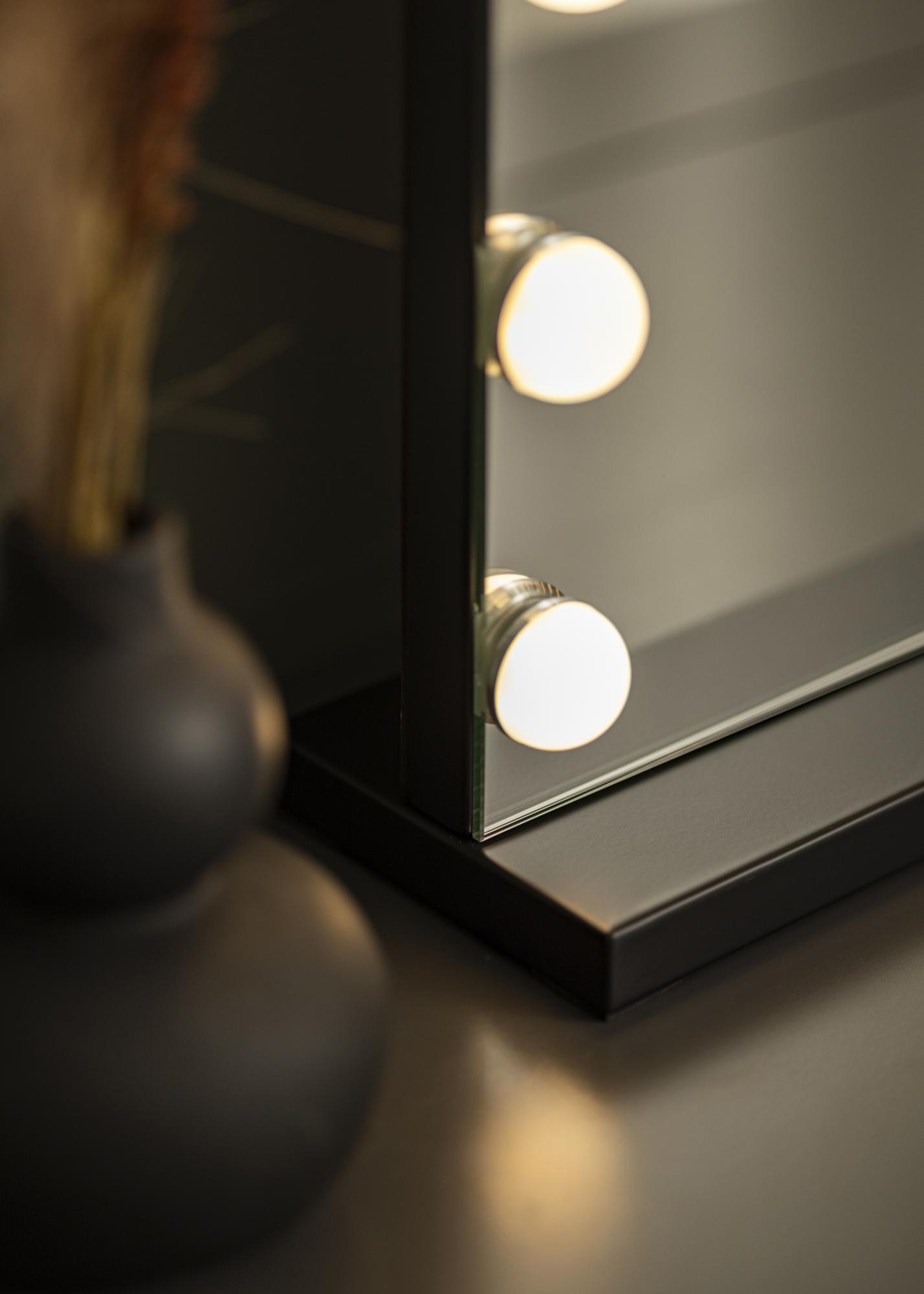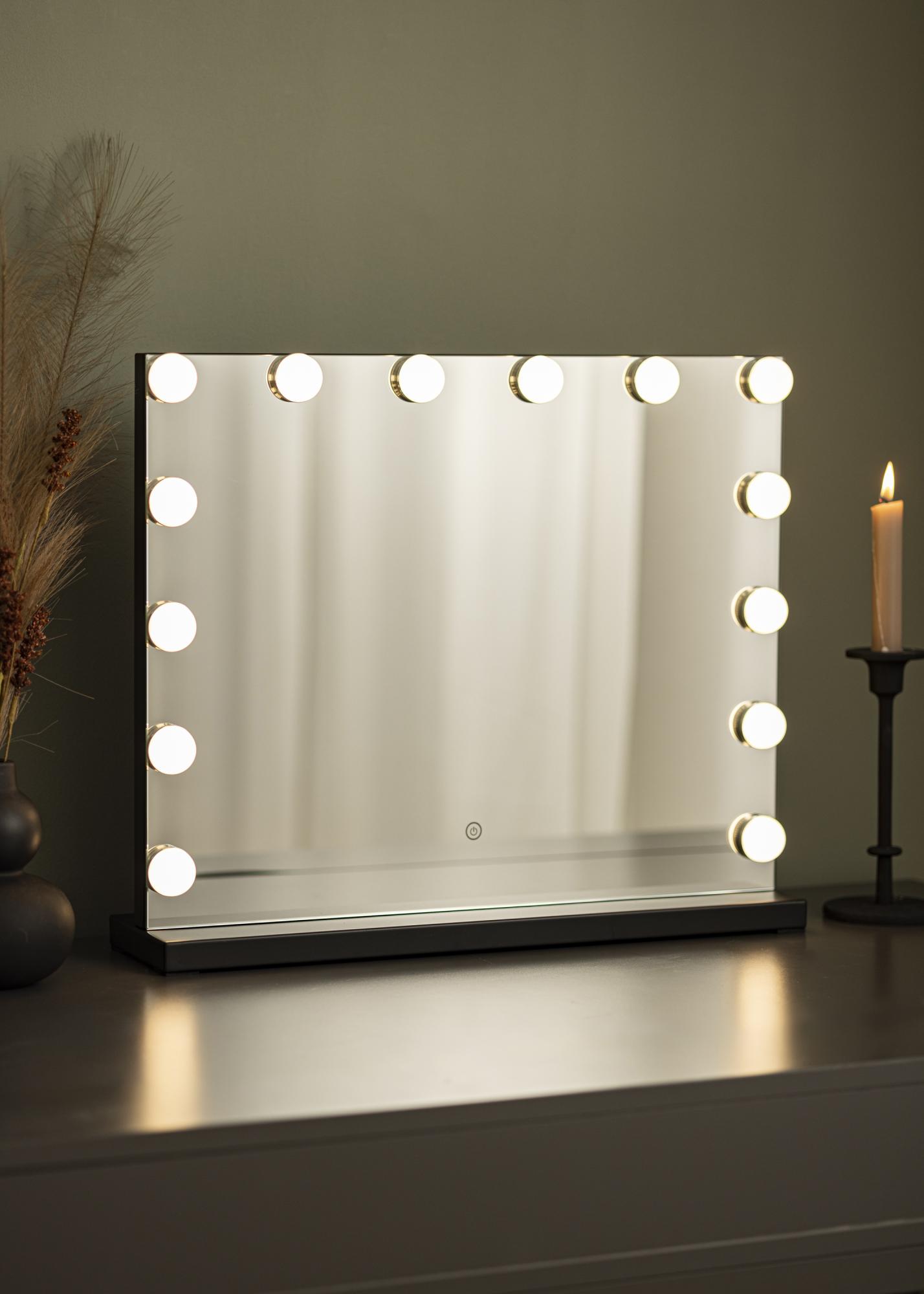 Pretvorite sobu u studio za Å¡minkanje s ovim luksuznim ogledalom za Å¡minkanje u Hollywood stilu od KAILA! Ovo je veliko ogledalo za Å¡minkanje s integriranim osvjetljenjem u obliku 14 LED žarulja koje lijepo uokviruju veliku povrÅ¡inu ogledala. LED osvjetljenje je podesivo i ima toplu bijelu svjetlost od 3000K. Lako ukljuÄujete osvjetljenje pritiskom na touch gumb na zaslonu i jednostavno prilagoÄavate jaÄinu držanjem gumba. Ogledalo mjeri 50x45 cm. ElektriÄni prikljuÄak s utiÄnicom.