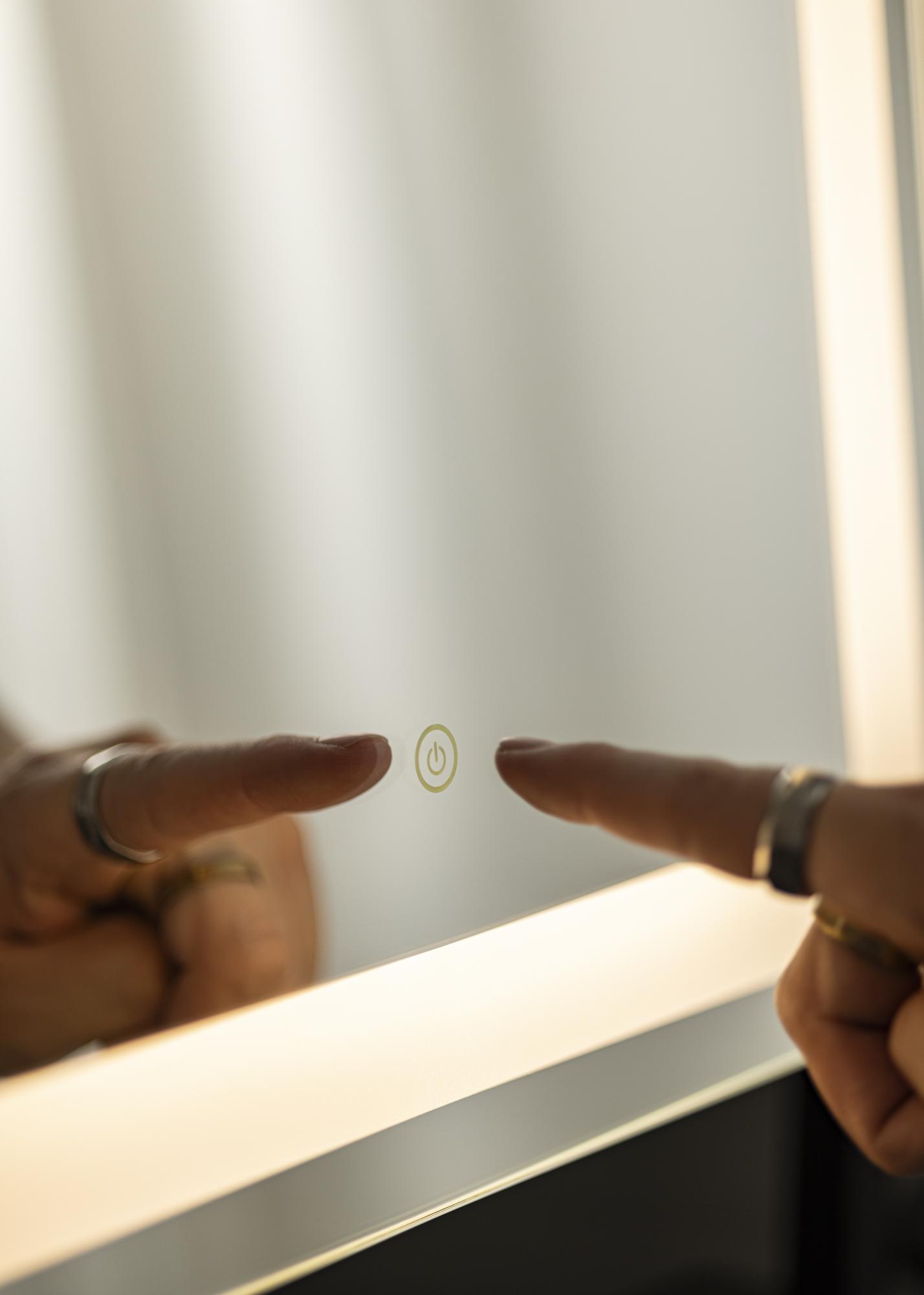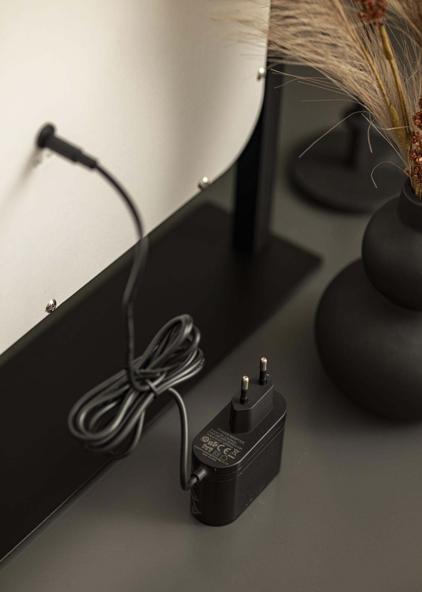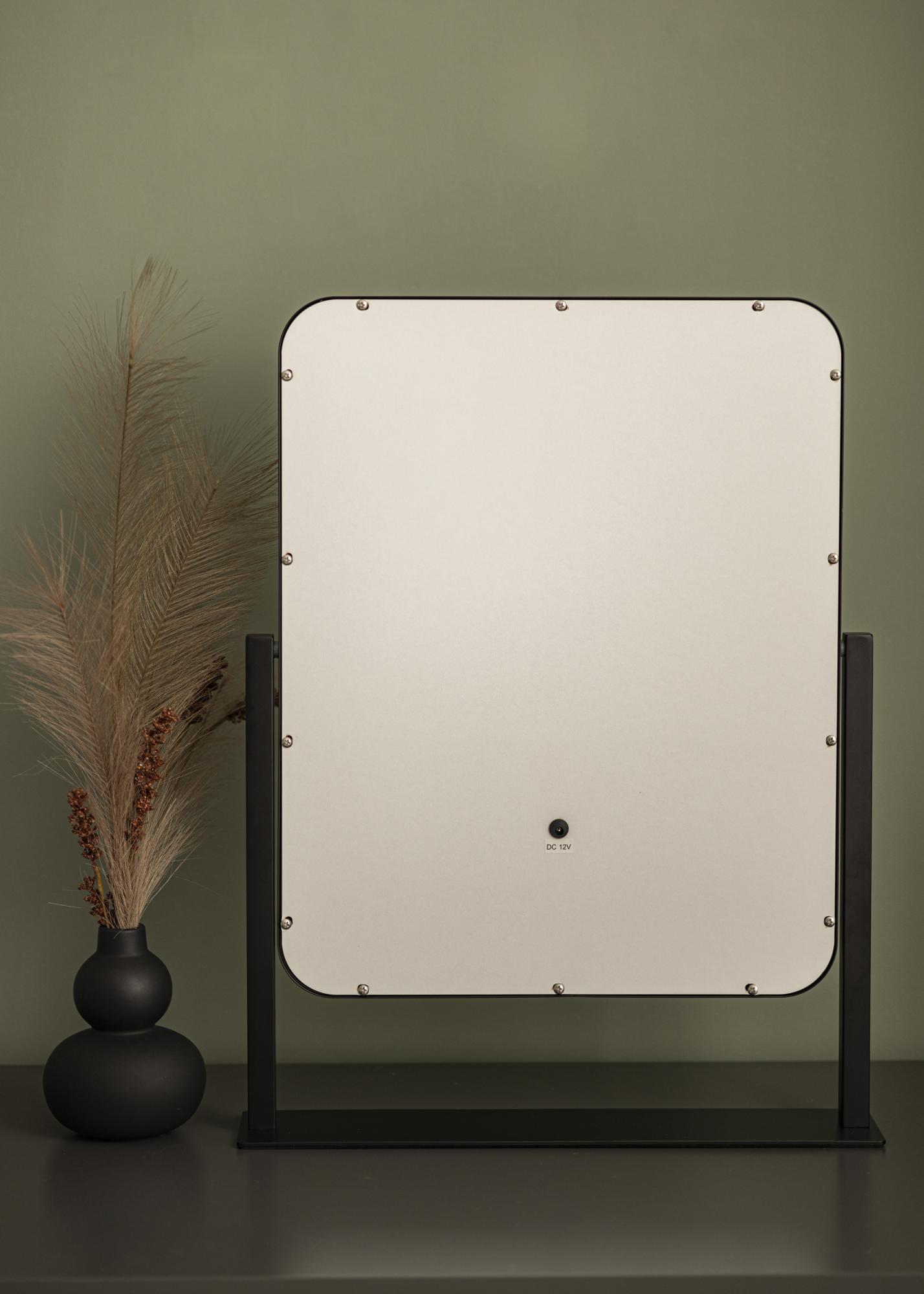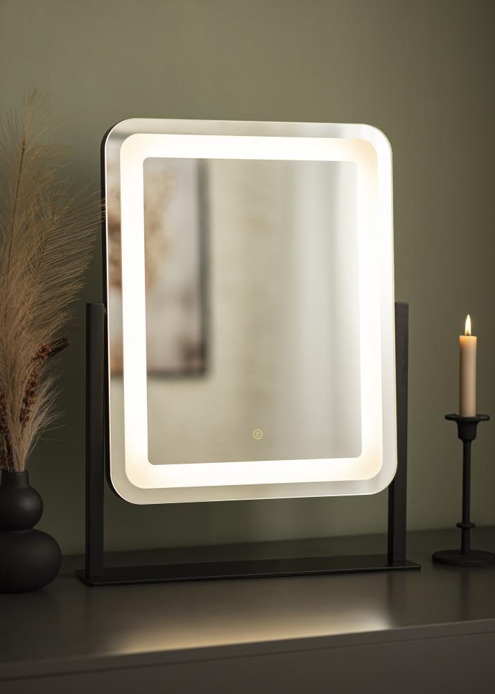 Zrcalo za šminkanje za one koje privlači trendi dizajn! Ovo zrcalo švedskog dizajna od KAILA dolazi u trendovskoj crnoj nijansi i ima matiranje s integriranim LED osvjetljenjem oko stakla zrcala. LED osvjetljenje pruža toplo bijelo svjetlo od 3000K, što je savršeno za nanošenje šminke. Osvjetljenje jednostavno aktivirajte dodirom na tipku na ekranu i podesite svjetlinu zadržavanjem tipke nekoliko sekundi. Zrcalo za šminkanje mjeri 45x60 cm i može se nagnuti tako da se lako može ogledati iz različitih kutova!