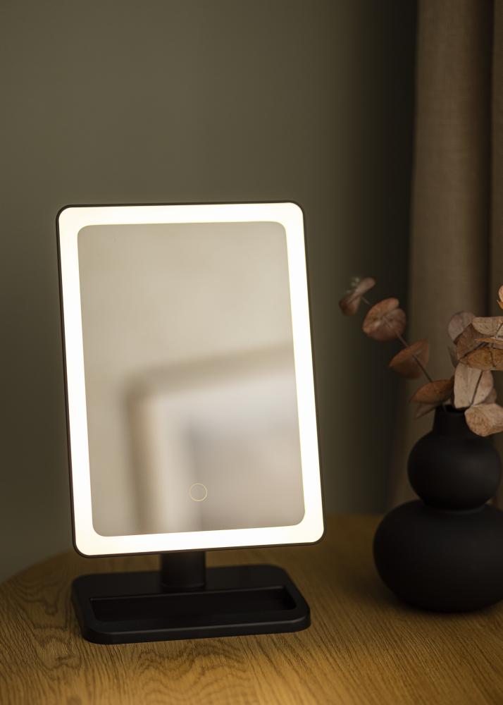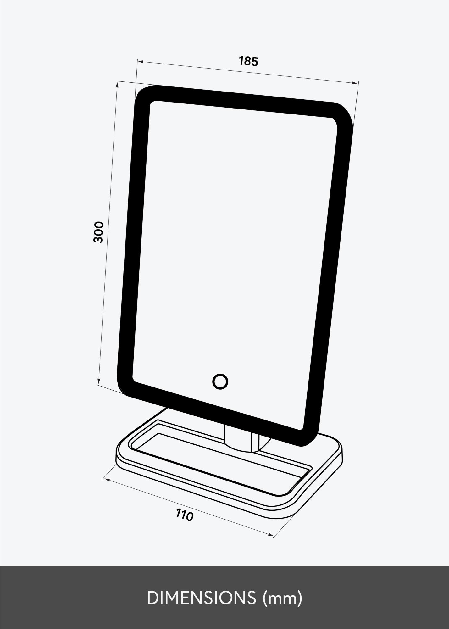 Zrcalo ima pametan dizajn s funkcijama koje olakÅ¡avaju Å¡minkanje s izvrsnim rezultatima. PovrÅ¡ina zrcala okružena je LED vrpcom koja osvjetljava vaÅ¡e lice - osim toga, može se okretati i naginjati kako biste mogli postaviti kut koji vam odgovara. Rasvjetu možete zatamnjivati pritiskom na gumb na zrcalu. TakoÄer dolazi s manjim zrcalom s 10x poveÄanjem, Å¡to je savrÅ¡eno kada se želite usredotoÄiti na mali dio lica. Zrcalo radi na ugraÄenu bateriju koja se puni putem priloženog USB kabela.