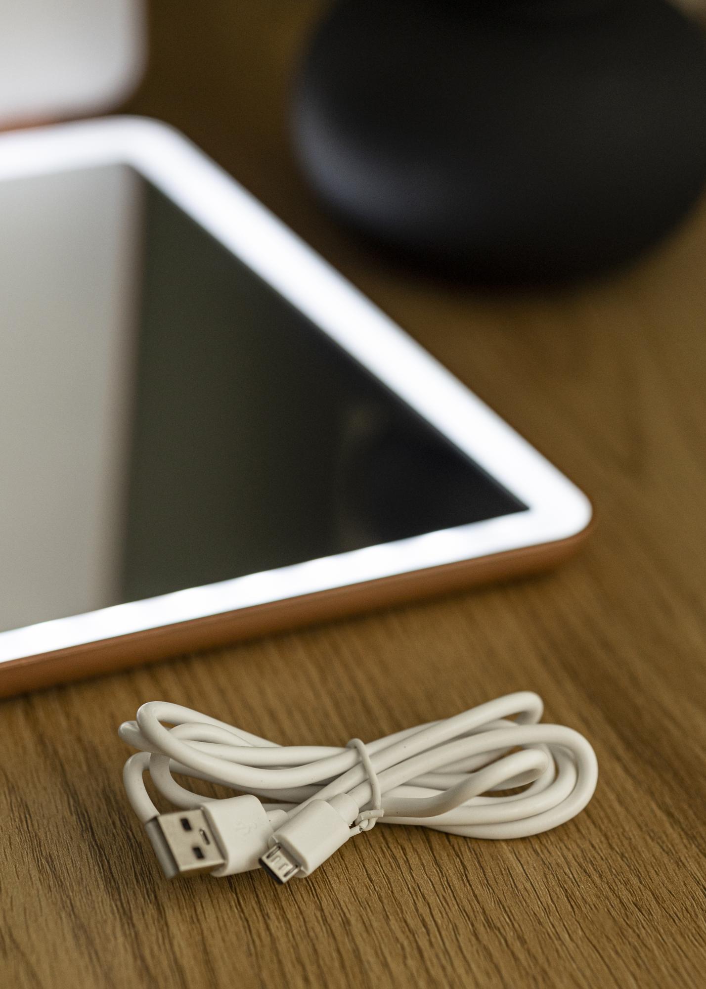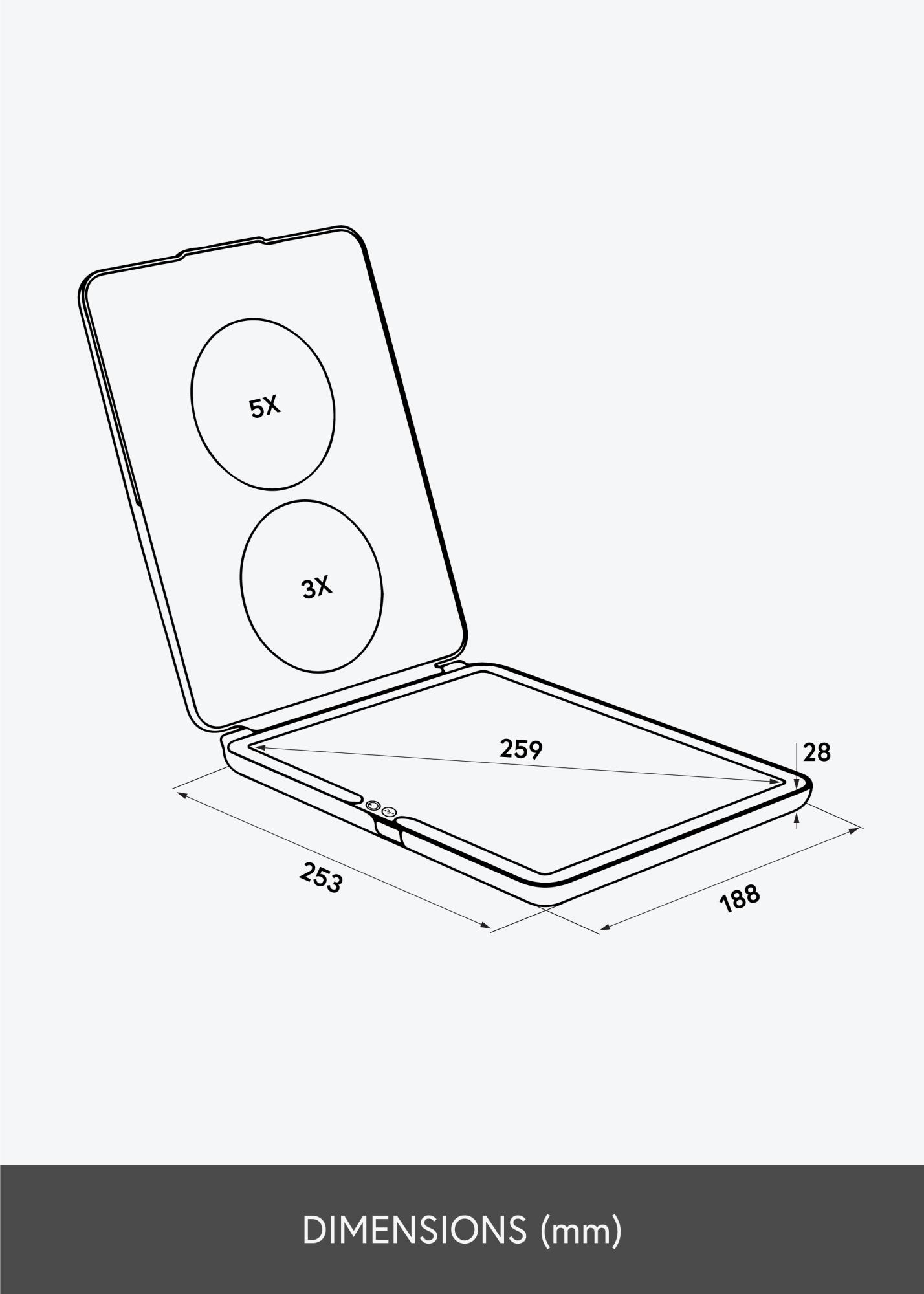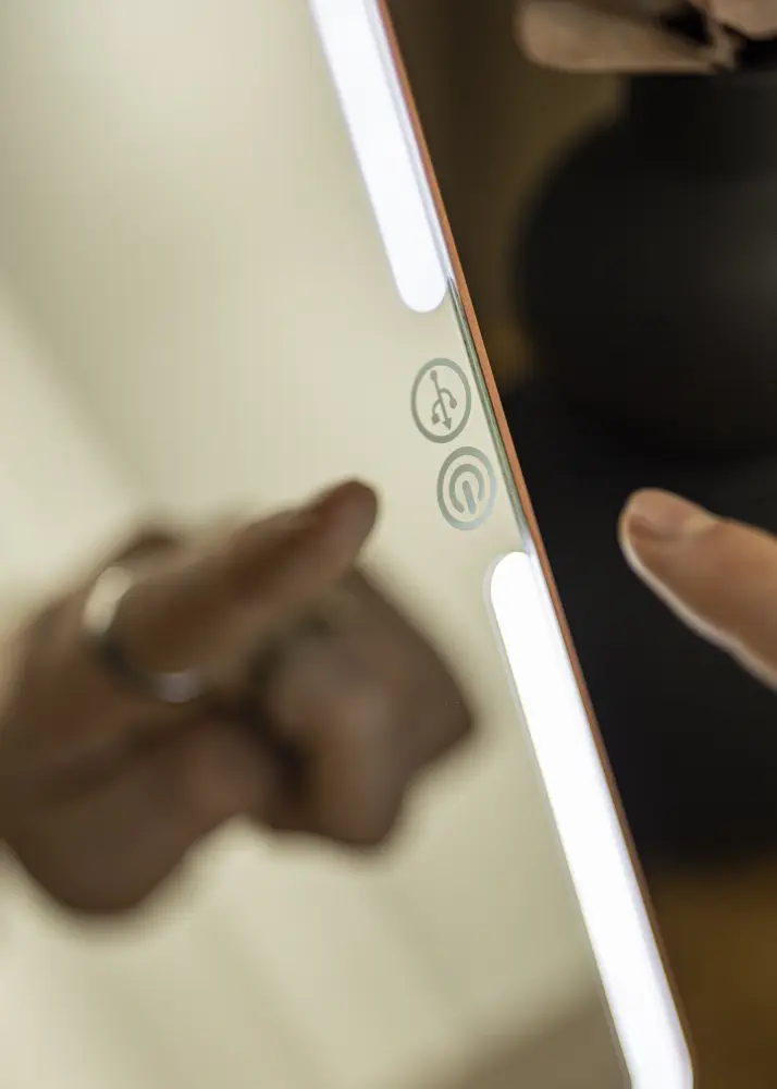 UgraÄena LED traka pruža ugodno svjetlo dok se ogledate. Rasvjeta se napaja iz ugraÄene baterije koja se jednostavno puni putem USB veze. Ogledalo je opremljeno dodirnom tipkom koja se koristi za ukljuÄivanje i iskljuÄivanje rasvjete, kao i za priguÅ¡ivanje svjetla. Kada sklopite ogledalo dok je ukljuÄeno, automatski prelazi u naÄin uÅ¡tede energije i svjetlo se gasi dok ponovno ne otvorite ogledalo.