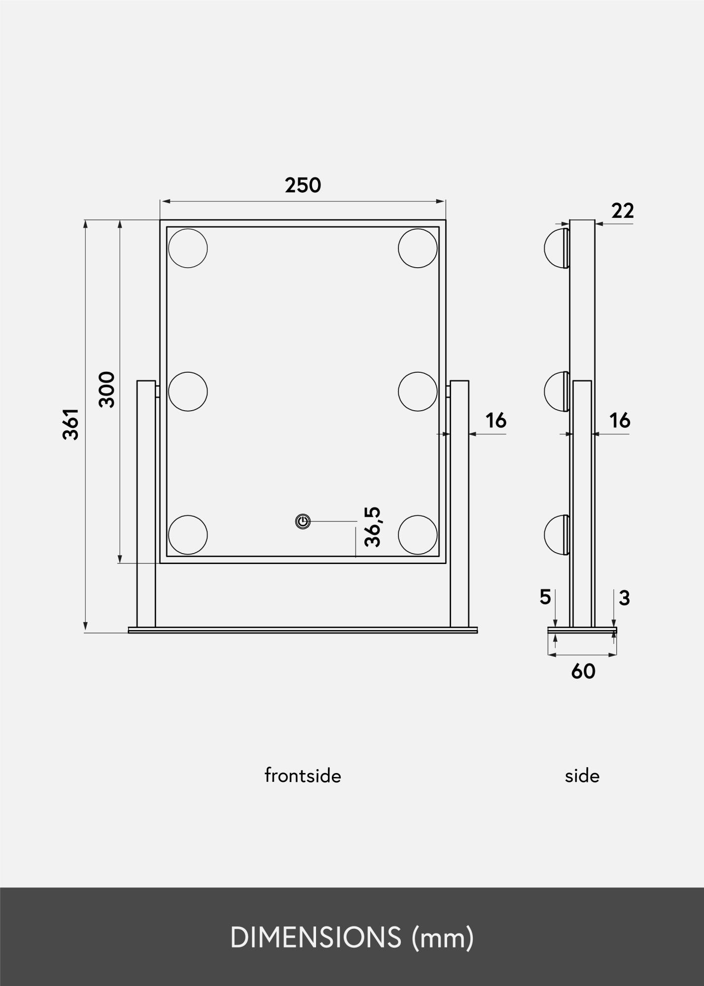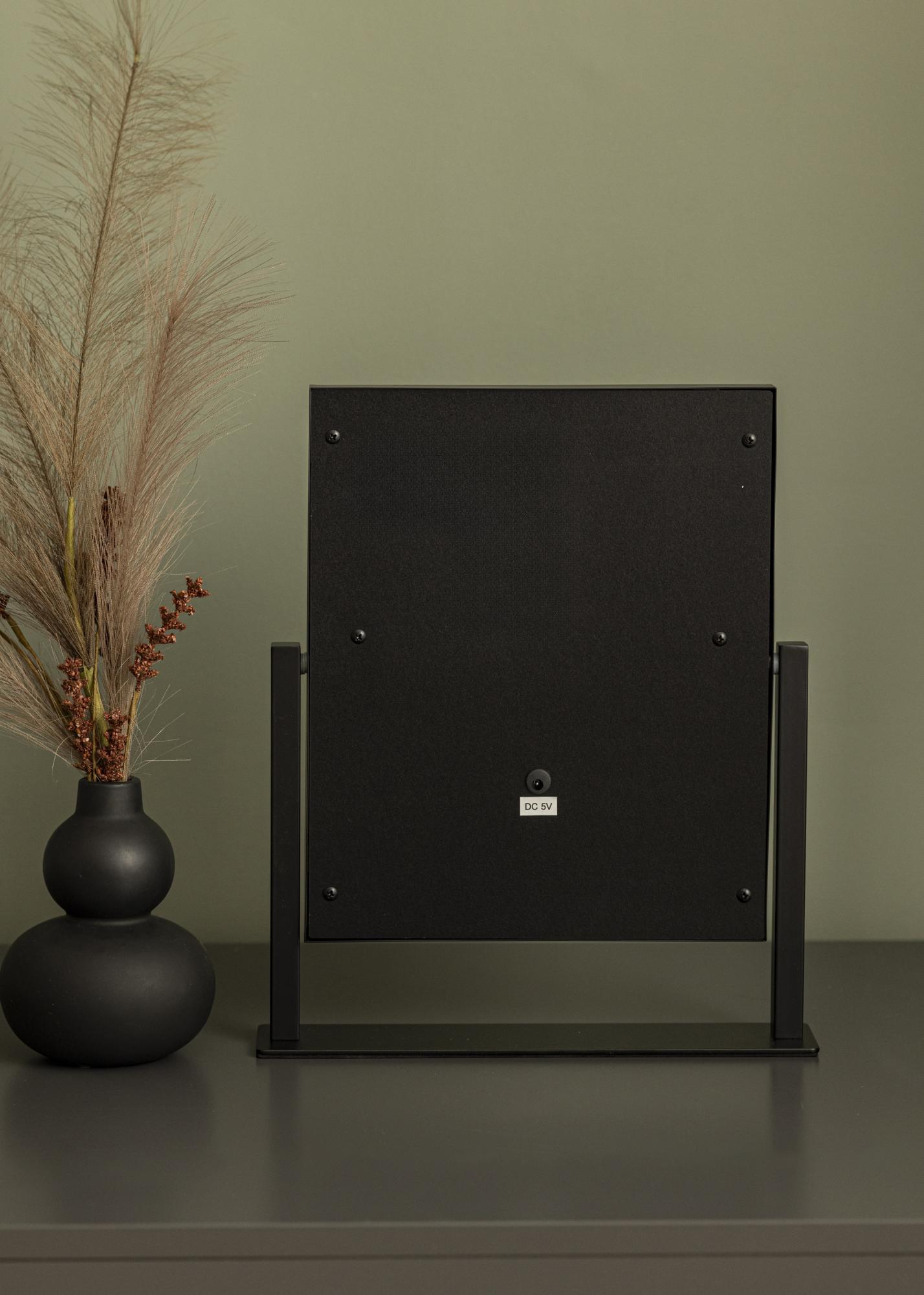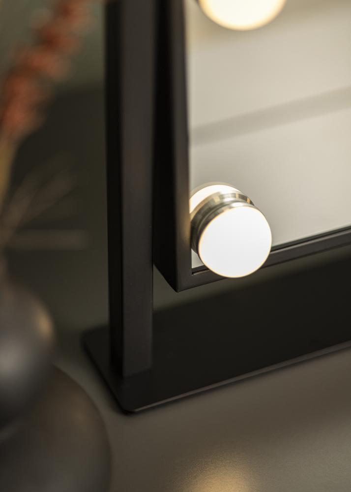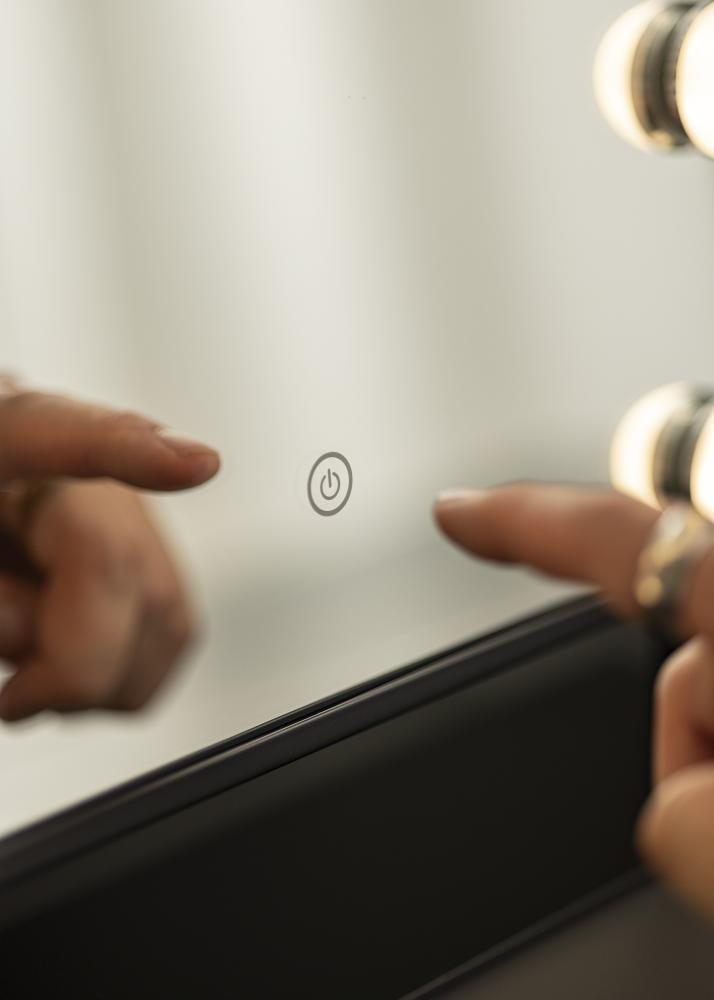 Ovo je stvarno luksuzno ogledalo za Å¡minkanje sa Å¡est dekorativnih i priguÅ¡ivih LED žarulja u trendovskoj crnoj nijansi. Rasvjeta daje toplo bijelo svjetlo od 3000K i ukljuÄuje se pritiskom na touch gumb. Podesite jaÄinu svjetla držeÄi gumb nekoliko sekundi. LED je izvor svjetla koji troÅ¡i manje energije, ima duži vijek trajanja i daje prirodnije i ujednaÄenije svjetlo. Ogledalo za Å¡minkanje može se naginjati kako biste lako nanijeli Å¡minku s viÅ¡e preciznosti. Osim svojih mnogih funkcija, ovo ogledalo za Å¡minkanje ima pravi Hollywoodski dojam i postaje elegantan detalj u kuÄi!