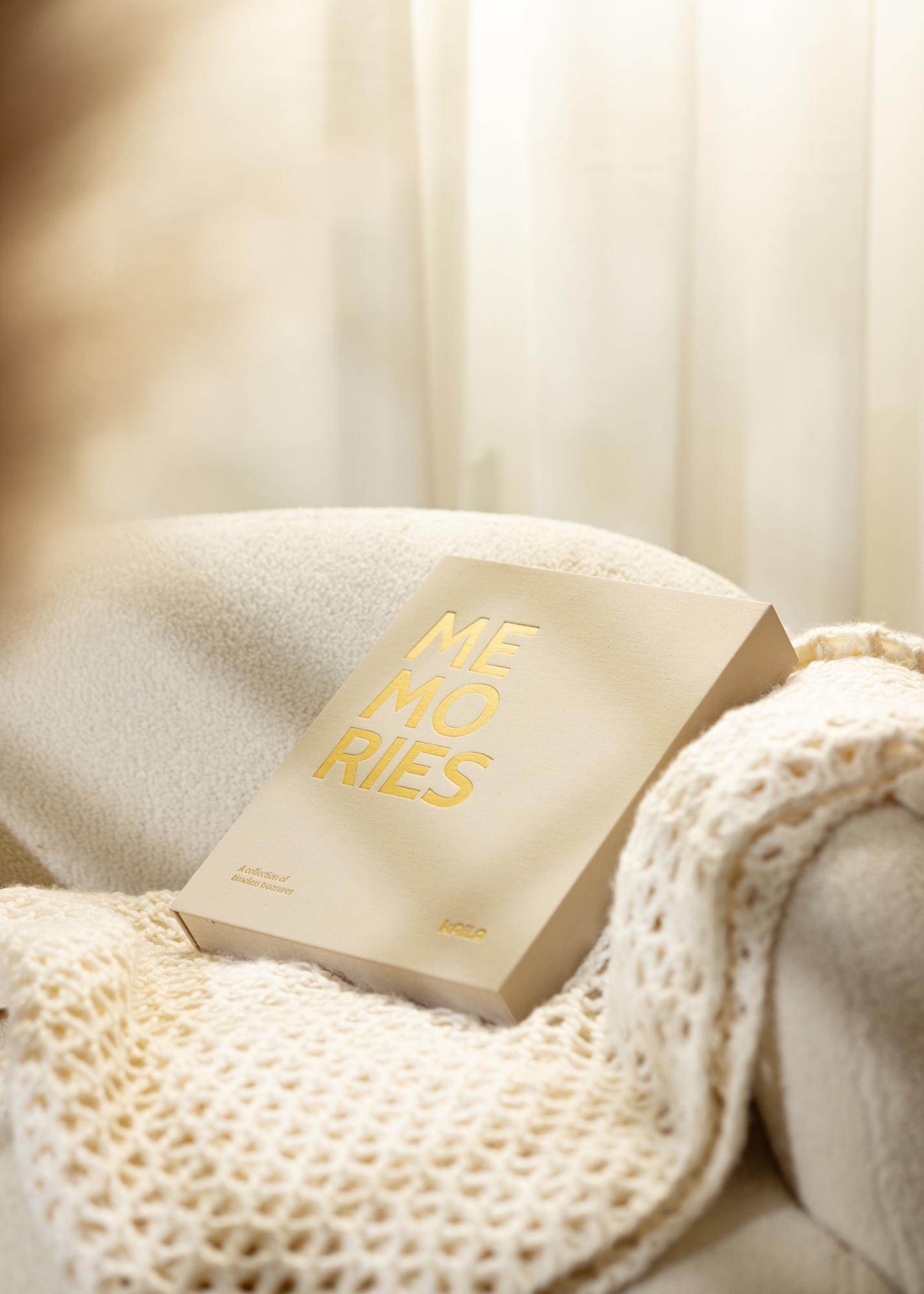 Album je elegantno obučen u tekstil boje krema, a na prednjoj strani i hrptu albuma nalazi se zlatni tisk s tekstom "MEMORIES". Naslov albuma dopunjen je i podnaslovom "A collection of timeless treasures" koji je ispisan dolje u lijevom kutu.