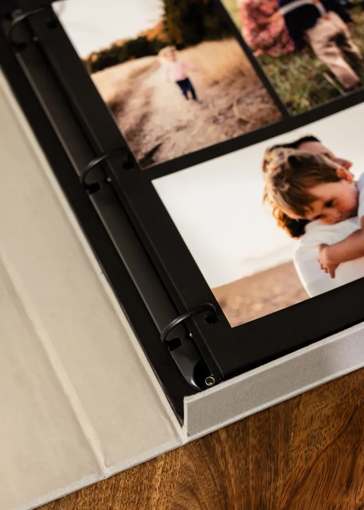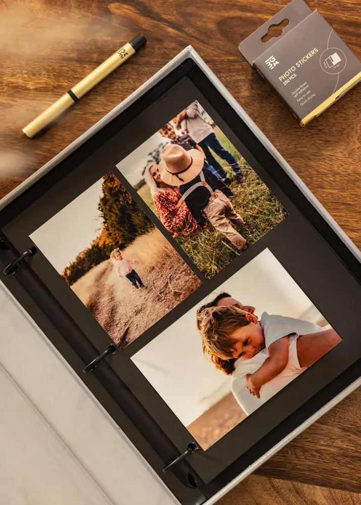 Foto album je oblikovan kao ekskluzivna kutija koju otvarate da biste došli do sadržaja. Unutar albuma nalazi se prstenasti uvez i 30 crnih listova (60 stranica) koje možete ispuniti svojim omiljenim uspomenama. Samostalno lijepite svoje fotografije, što vam daje veliku fleksibilnost i mogućnost da oslobodite svoju kreativnu stranu.