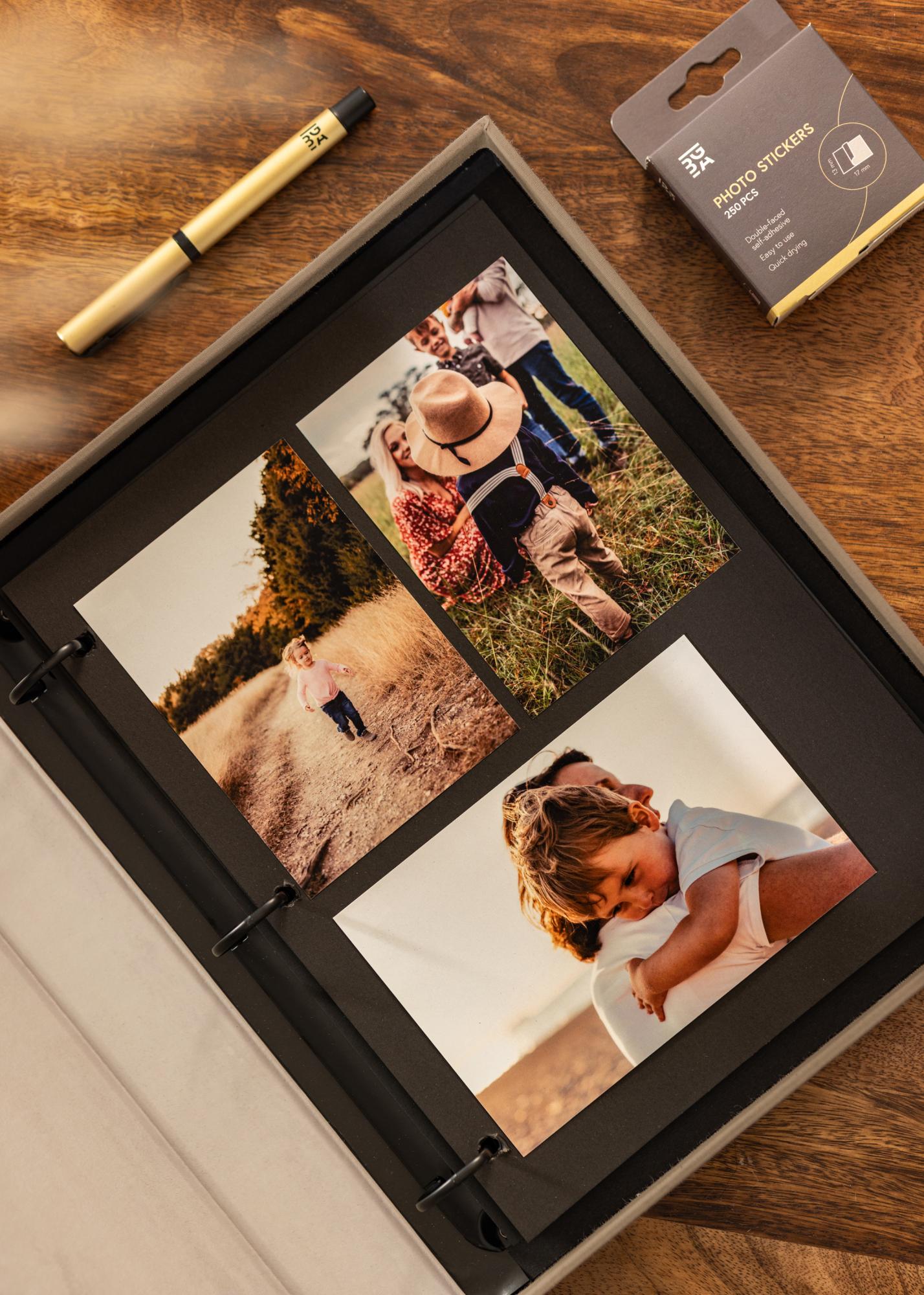 Ovo je fotoalbum za vas koji želite sa stilom očuvati svoje najdragocjenije foto uspomene! Album je dizajniran kao elegantna Coffee Table Book, koja se može postaviti kao ukras na komode i stolove u vašem domu. Unutar albuma pronaći ćete prstenasti uvez sa 60 crnih stranica (30 listova) koje možete ispuniti svojim najljepšim fotografijama. Fotografie sami lijepite u album, što vam omogućuje da budete kreativni i kombinirate slike u različitim formatima i veličinama.