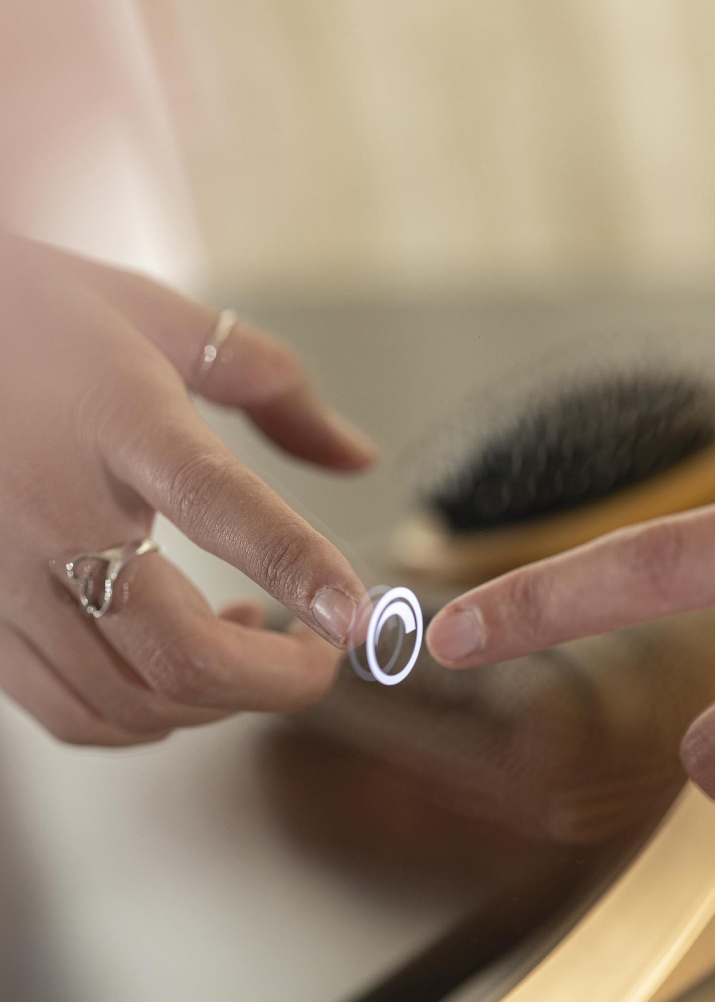 Svjetlost ima ugodan sjaj koji lako možete prigušiti. Za podešavanje svjetline držite dodirnu tipku na donjem rubu zrcala par sekundi. Zrcalo je namijenjeno za fiksnu instalaciju i treba ga postaviti električar. Kako bi zrcalo ispravno funkcioniralo, treba biti spojeno na obični prekidač, a ne na prekidač sa regulatorom svjetline.
