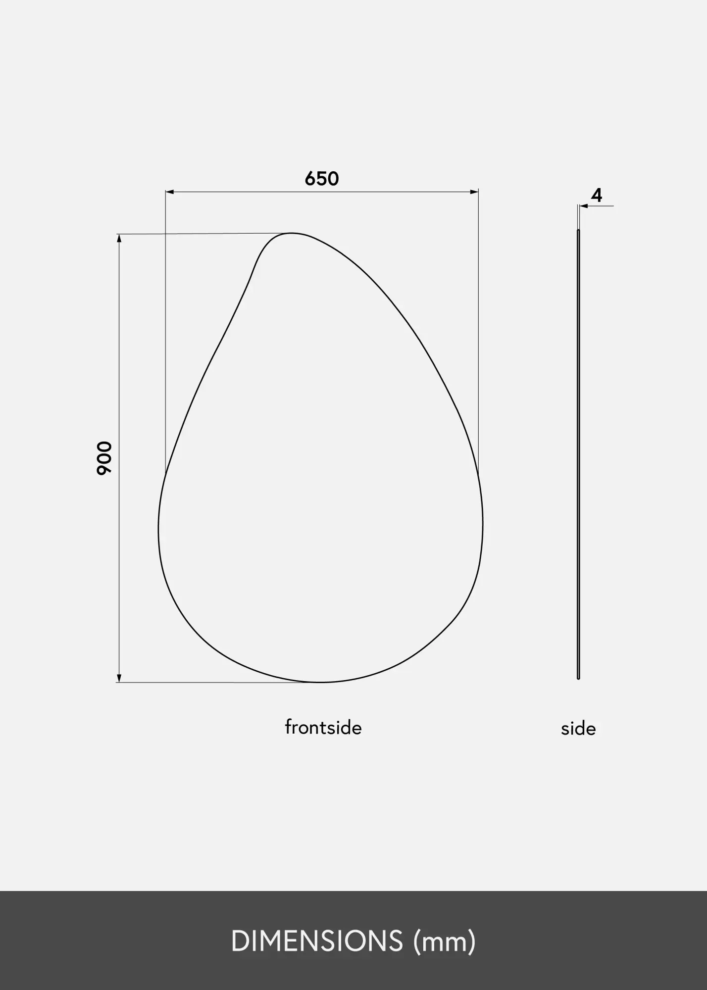 Ovo ogledalo u obliku kapi dostupno je u nekoliko veličina, od kojih ova varijanta ima dimenzije 65x90 cm. Postavite ogledalo na zid u dnevnoj sobi, hodniku, spavaćoj sobi - ili u bilo kojoj prostoriji u kojoj želite dodati funkcionalnost i elegantan švedski dizajn.