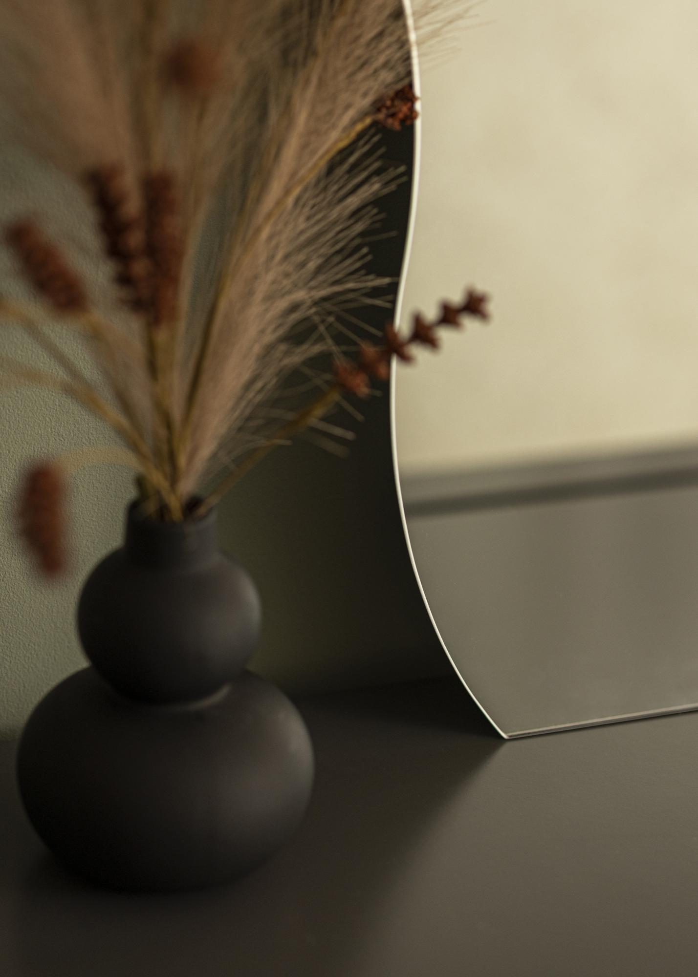 Ovo je zidno ogledalo modernog dizajna, sa stranama koje imaju blagi valovit oblik. Donji rub je ravan, Å¡to Äini ogledalo posebno elegantnim za postavljanje iznad komada namjeÅ¡taja, gdje donji rub ogledala postaje paralelna linija s gornjom stranom komode ili pomoÄnog stoliÄa. Ogledalo ima zidne nosaÄe na stražnjoj strani i postavlja se na zid u uspravnom položaju.