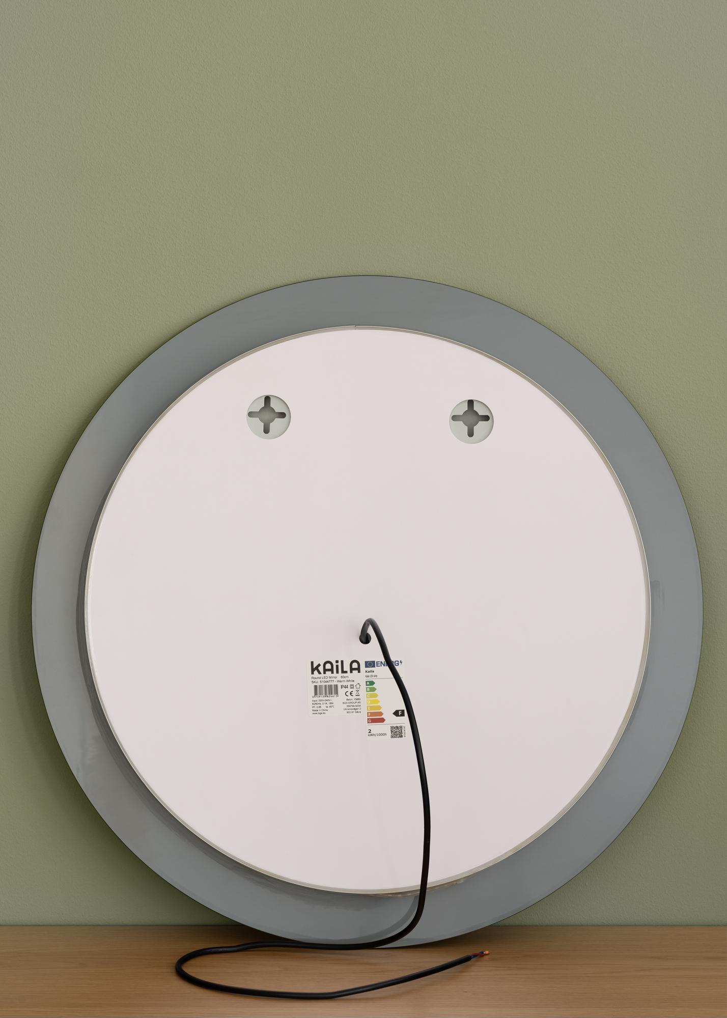 Ovo je klasiÄno kupaonsko ogledalo u okruglom obliku od Å¡vedske KAILA-e. Kupaonsko ogledalo ima integrirano podesivo LED osvjetljenje svuda oko koje se svijetli iza i pruža lijepo toplo bijelo svjetlo naprijed u 3000K. Osvjetljenje je podesivo i lako možete prilagoditi jaÄinu osvjetljenja pritiskom na gumb nekoliko sekundi. SljedeÄi put kada ukljuÄite osvjetljenje, ogledalo Äe zapamtiti koju jaÄinu svjetla je imalo postavljenu. LED je energetski Å¡tedljiv izvor svjetla koji daje ravnomjerno i prirodno svjetlo.