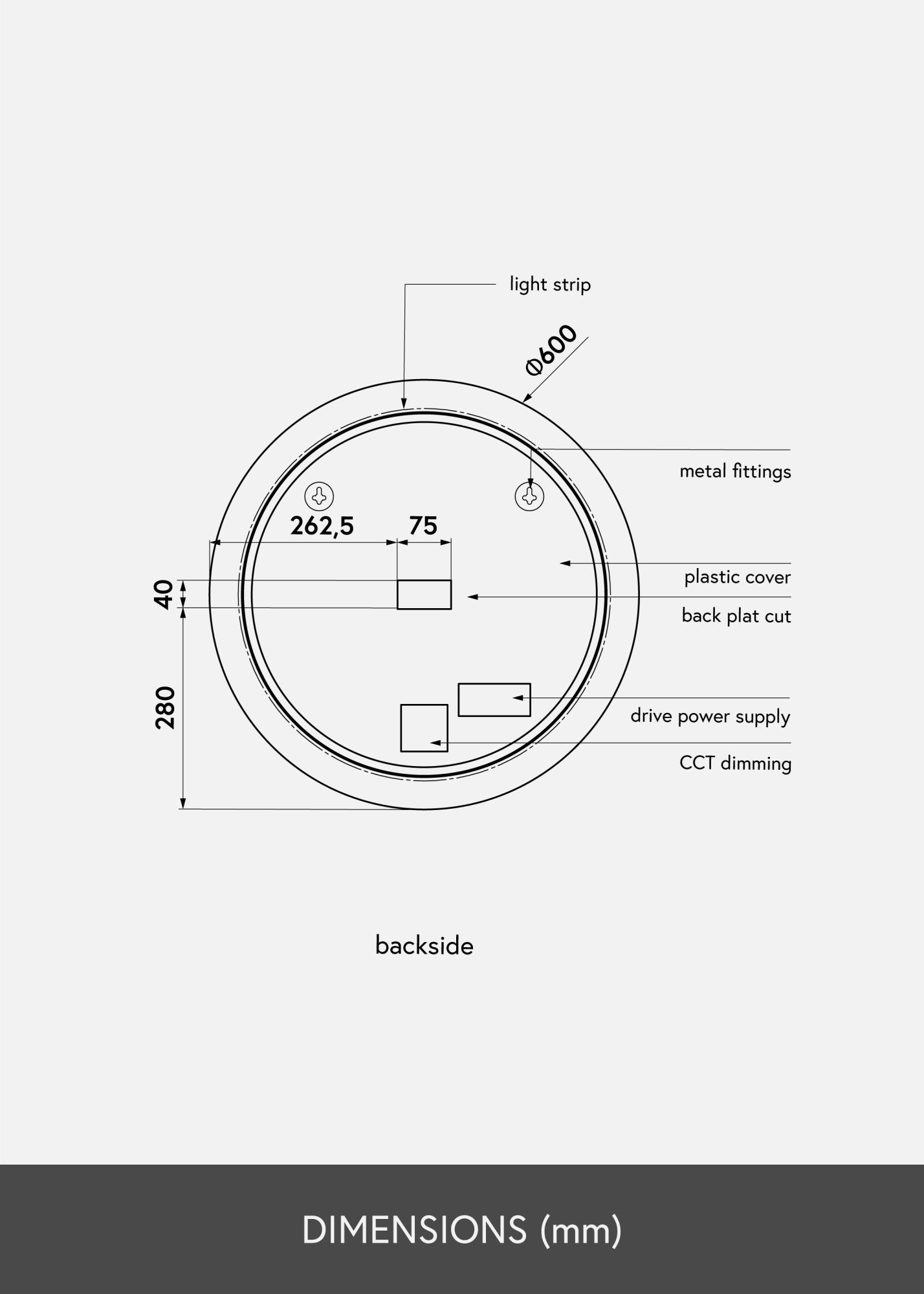 Ogledalo je odobreno za kupaonicu, ali njegov bezvremen i elegantan dizajn takoÄer izgleda lijepo na drugim zidovima u kuÄi. Ogledalo ima promjer 60 cm, duboko je samo 3 cm i ima zidne nosaÄe. Ogledalo je namijenjeno za fiksnu instalaciju i povezuje se na prekidaÄ. Da bi ogledalo ispravno radilo, treba ga prikljuÄiti na obiÄni prekidaÄ, a ne na priguÅ¡ivaÄki prekidaÄ.