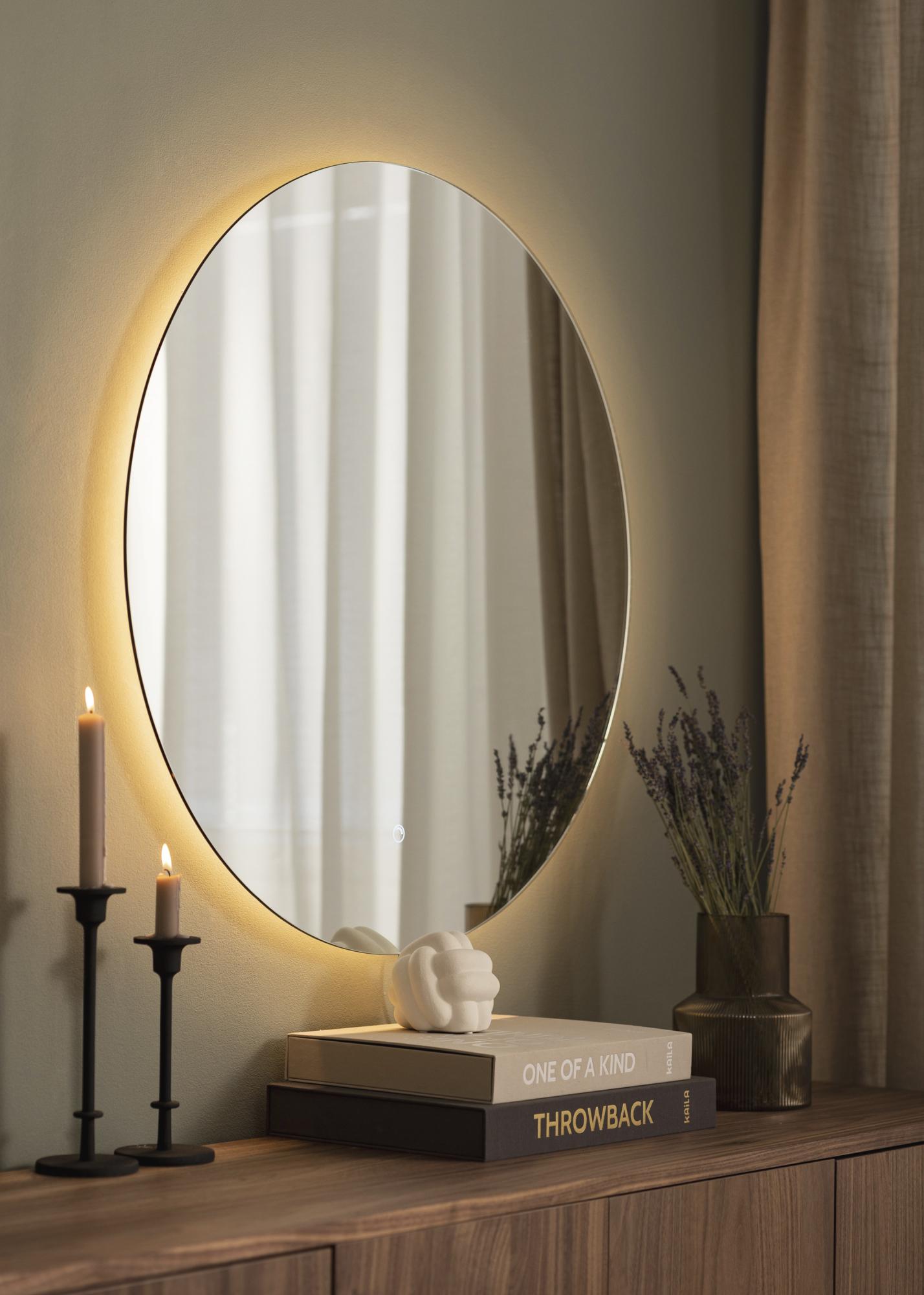 Ovo je klasiÄno ogledalo za kupaonicu u okruglom obliku od Å¡vedskog KAILA. Ogledalo ima integrirano priguÅ¡ljivo LED osvjetljenje oko sebe koje svijetli odostraga i daje lijepu toplu bijelu svjetlost prema naprijed pri 3000K. Osvjetljenje je priguÅ¡ljivo i možete jednostavno prilagoditi jaÄinu osvjetljenja držeÄi tipku nekoliko sekundi. SljedeÄi put kada ukljuÄite osvjetljenje, ogledalo Äe zapamtiti na koju jaÄinu svjetlosti je bilo podeÅ¡eno. LED je energetski uÄinkovito svjetlosno tijelo koje daje ravnomjernu i prirodnu svjetlost.