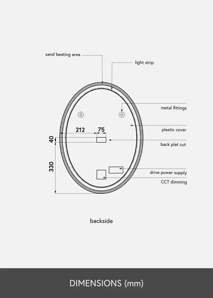 Ovo je zaista kupaonsko ogledalo u elegantnom dizajnu s njegovim ovalnim oblikom i integriranom LED rasvjetom! Integrirana LED rasvjeta je podesiva i jaÄina se jednostavno podeÅ¡ava pritiskom na vodootpornu touch-tipku na ekranu. Rasvjeta svijetli u toploj bijeloj nijansi od 3000K iza ogledala i daje lijep sjaj prema naprijed. LED je energetski Å¡tedljiv izvor svjetla koji daje ravnomjerno i prirodno svjetlo. Ogledalo je odobreno za kupaonsku upotrebu. Kupaonsko ogledalo je namijenjeno za fiksnu instalaciju i povezuje se s prekidaÄem. Kako bi ogledalo ispravno radilo, treba ga povezati s uobiÄajenim prekidaÄem, a ne s prekidaÄem za zatamnjenje.