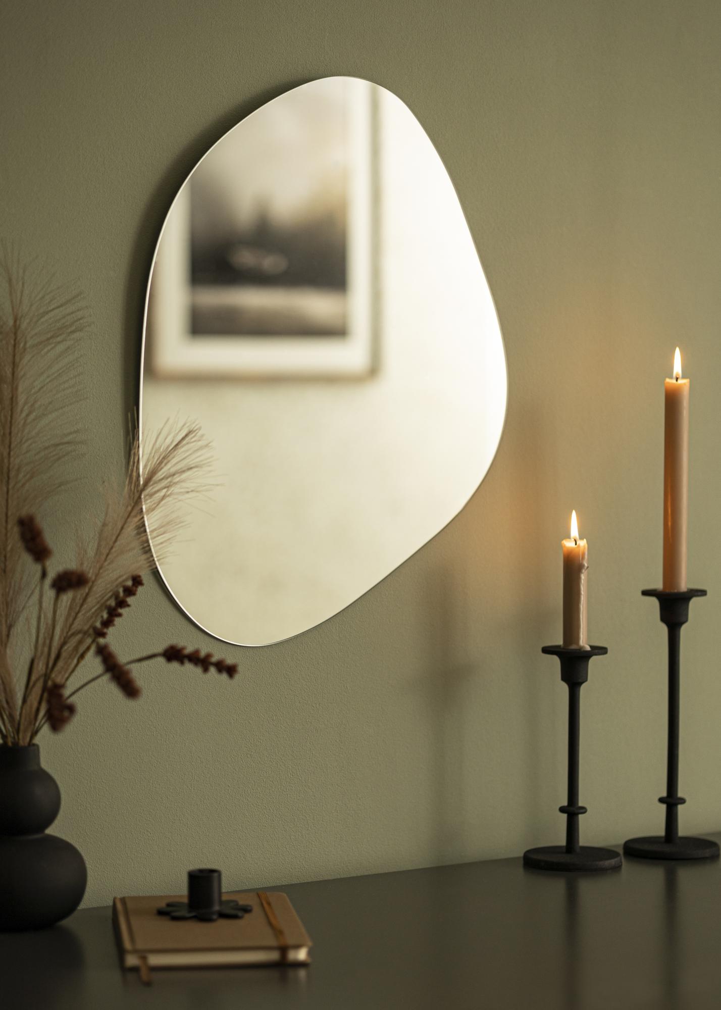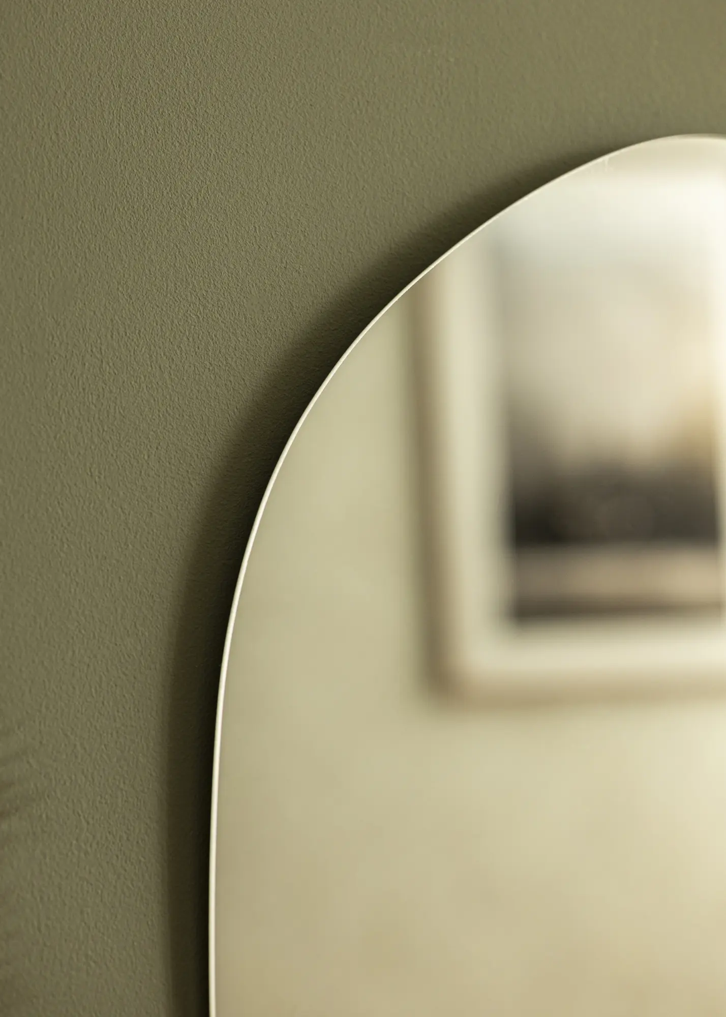 Tražite li elegantno zidno ogledalo za svoj dom? Onda je ovo ogledalo nešto za vas! Ogledalo ima dizajn bez okvira te tanko ogledalo staklo od samo 4 mm i mekan oblik, koji lijepo razbija ravne linije u ostatku interijera.