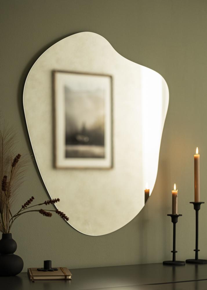 Neka ovaj trendi zidni ogledalo postane uzbudljivi detalj interijera koji lijepo reflektira svjetlost iz prozora i svjetiljki. Jedinstveni oblik i nedostatak okvira daju ogledalu njegov karakterističan izgled, koji je moderan i minimalistički.