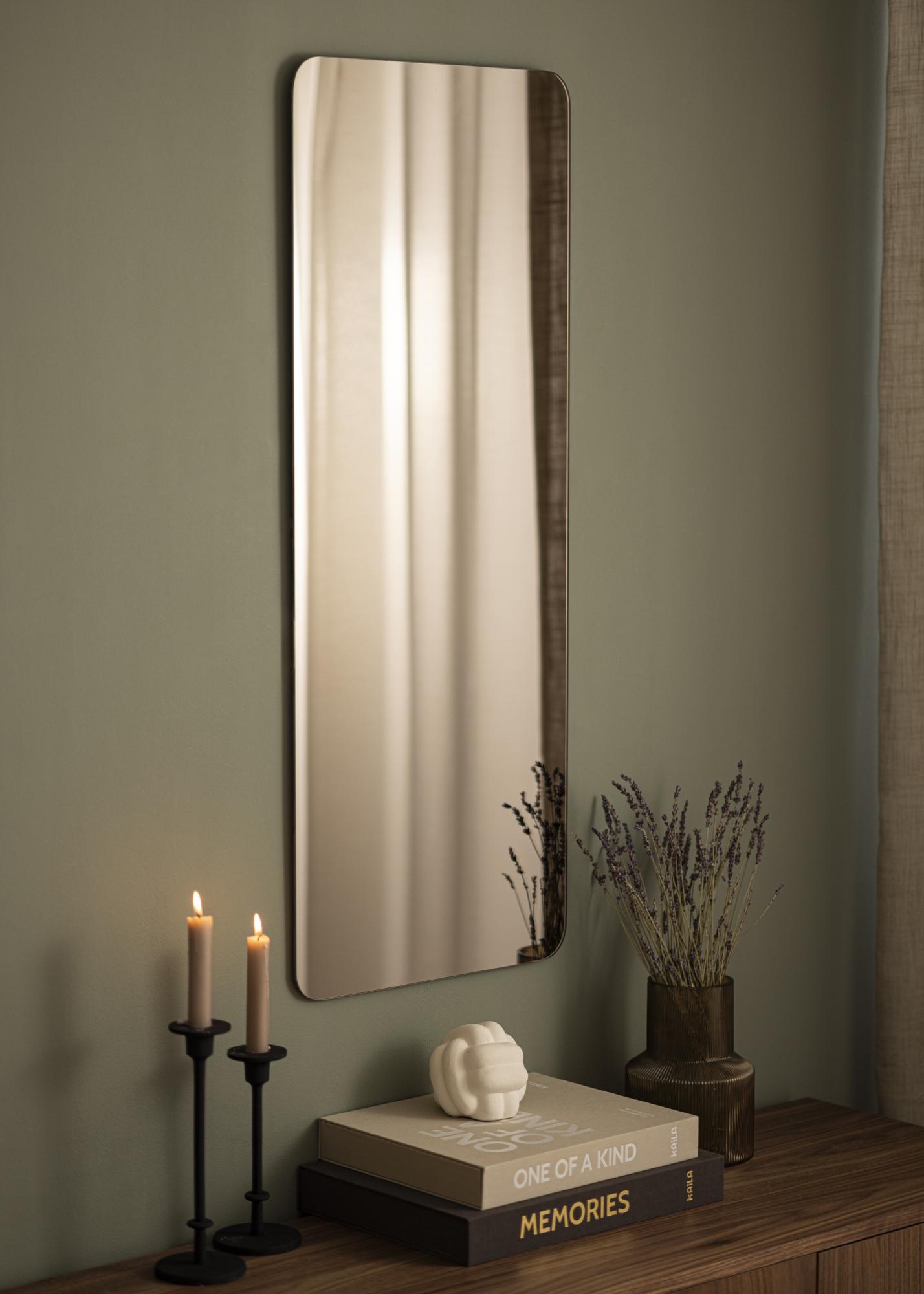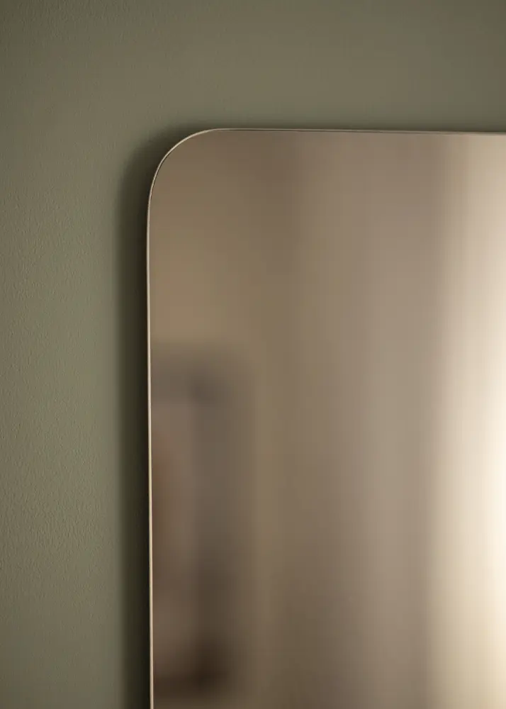 Ovo je pravokutno ogledalo s dekorativno zaobljenim kutovima koje mu daje nježan i elegantan dojam. Staklo ogledala je nijansirano u elegantnu nijansu tamne bronce, Å¡to ovo ogledalo Äini efektnim i trendi dekorativnim detaljem u vaÅ¡em domu. Ogledalo je takoÄer vrlo tanko i nema okvir, Å¡to dodatno doprinosi njegovom vitkom, elegantnom osjeÄaju.