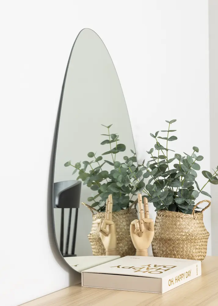 Asimetrično ogledalo postaje zanimljiv i trendi dekorativni detalj u vašem domu! Ovo ogledalo je također vrlo tanko, što pojačava njegov elegantni izgled.