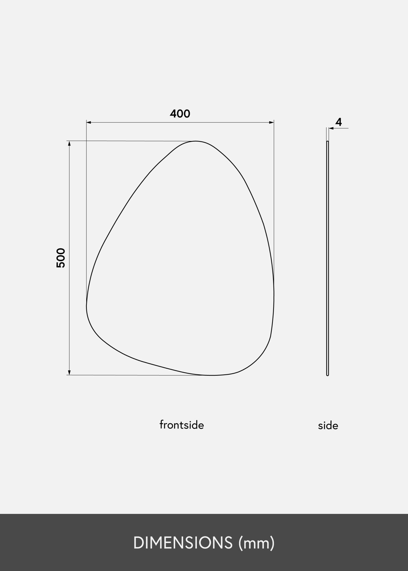 Ovo ogledalo je dizajnirano za vertikalno postavljanje, što ga čini idealnim za uži zid ili prostore gdje vertikalni oblik može naglasiti visinu prostorije. S dimenzijama 40x50 cm dovoljno je veliko da bude funkcionalno, dok je diskretno dovoljno da se uklopi u vaš interijer.