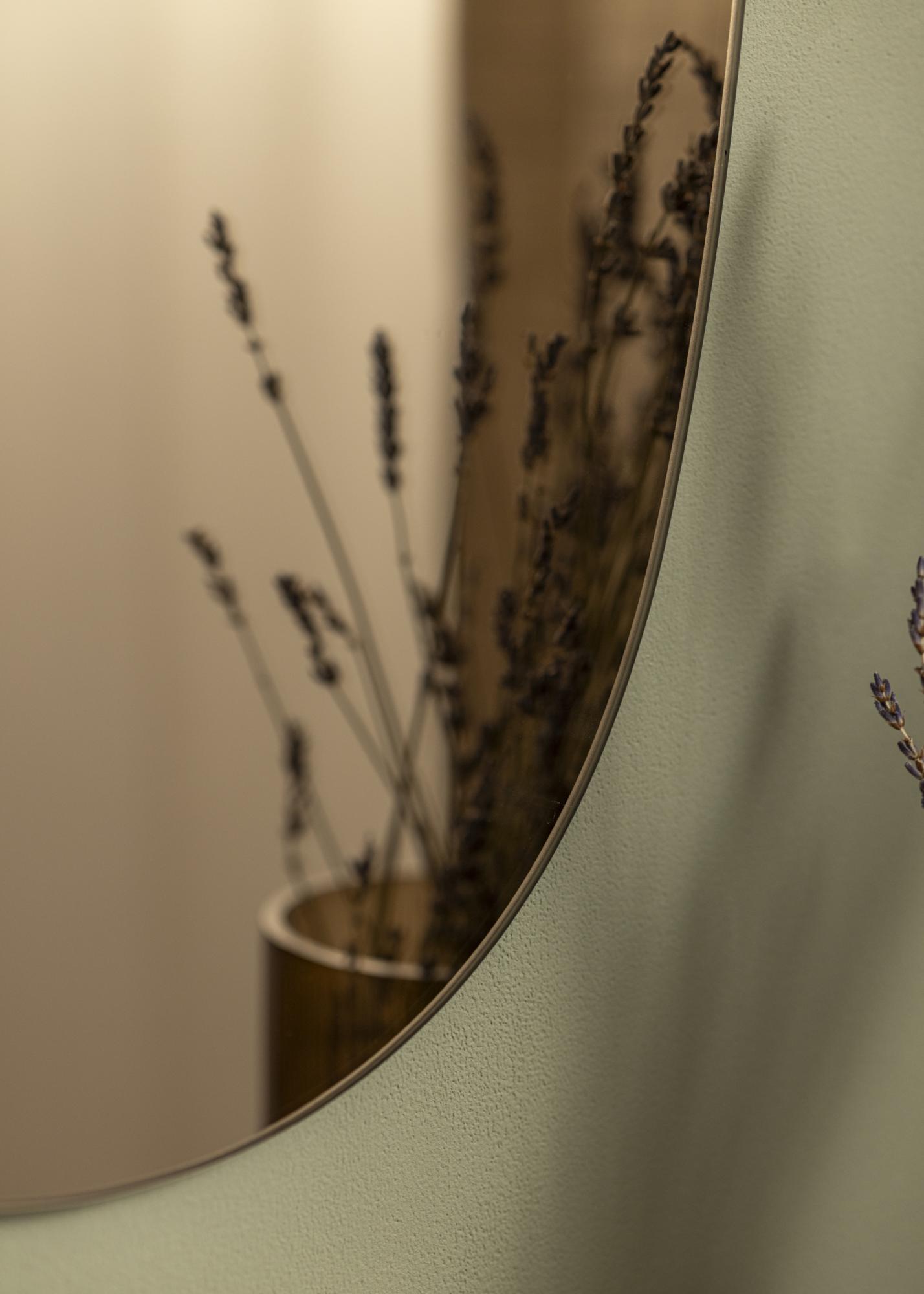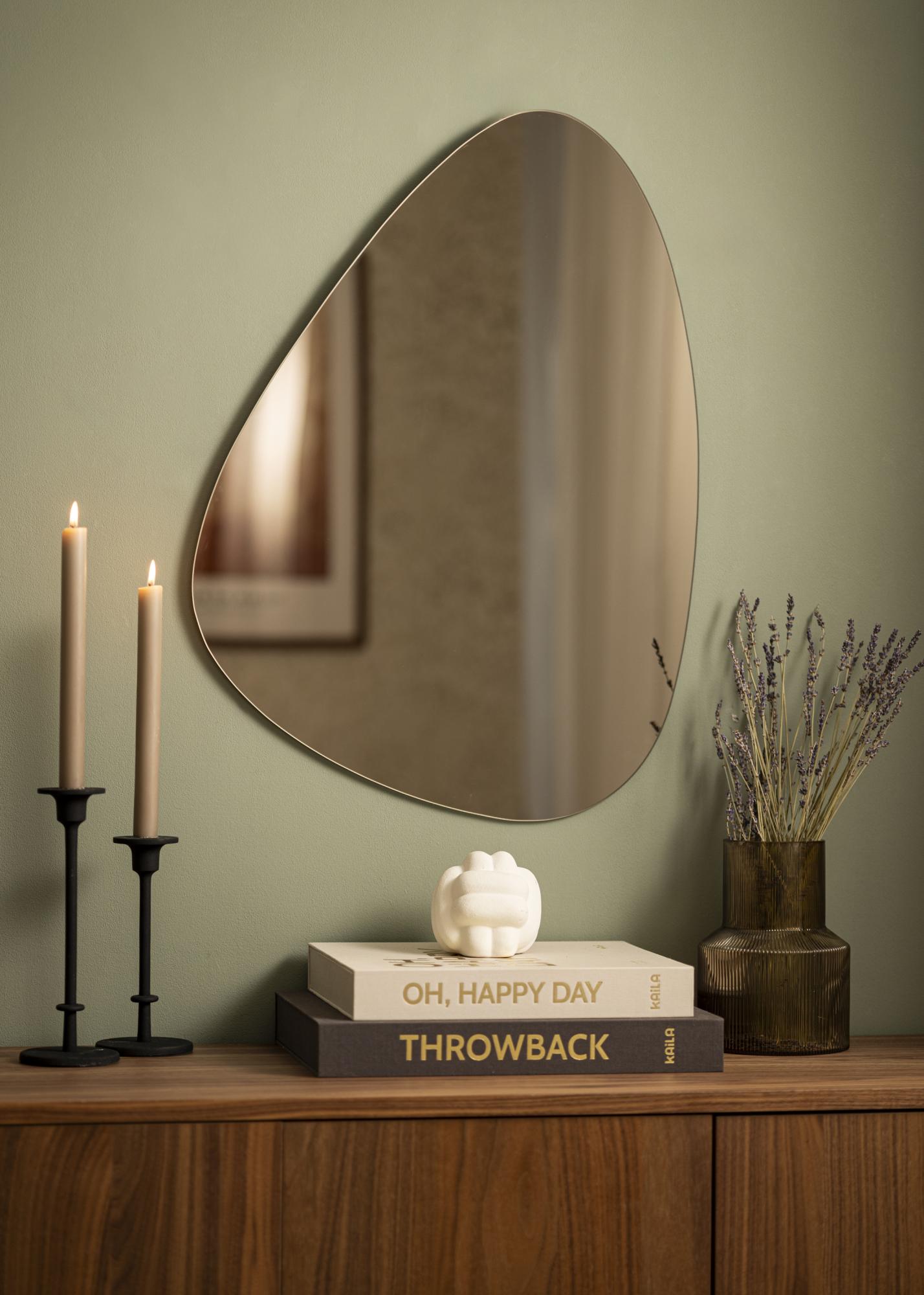Ovo asimetrično ogledalo postat će stvarno lijep i trendi detalj u vašem domu! Osim zanimljivog jajolikog dizajna, ovo ogledalo ima i stilizirano brončano tonirano staklo koje dodatno pojačava moderan izgled te se lijepo usklađuje s mnogim različitim shemama boja. Mekani oblik u kombinaciji s činjenicom da je ogledalo vrlo tanko i nema okvir, daje ogledalu rijetko elegantan i vitak osjećaj. Savršeno kao funkcionalan i trendi zidni ukras u dnevnoj sobi, hodniku ili spavaćoj sobi.