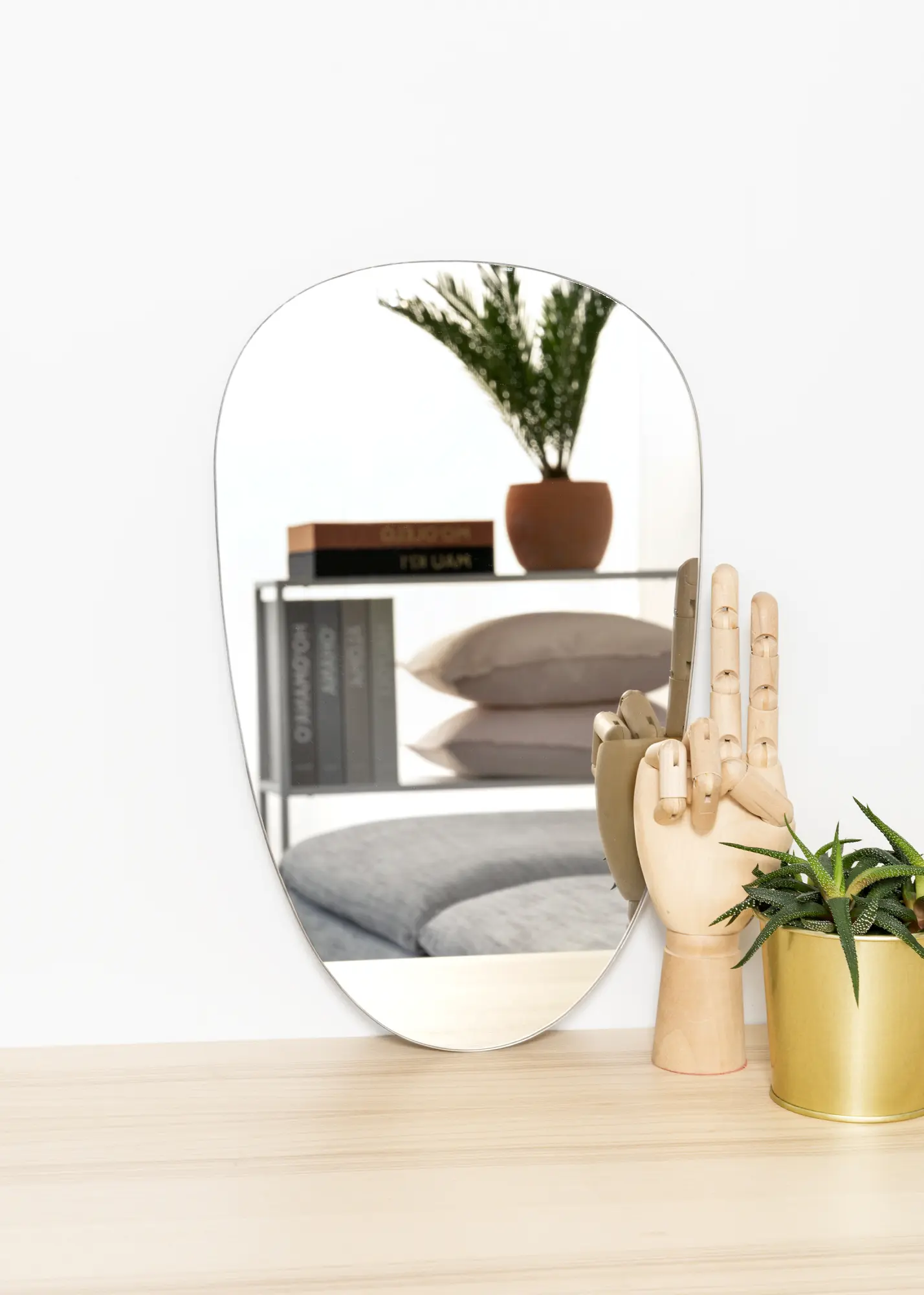 Zrcalo s uzbudljivim i pomalo drugačijim oblikom ostavlja trendovski dojam u vašem domu! Ovo asimetrično zrcalo je također samo 4 mm tanko i nema okvir, što mu daje vrlo elegantan i profinjen izgled.
