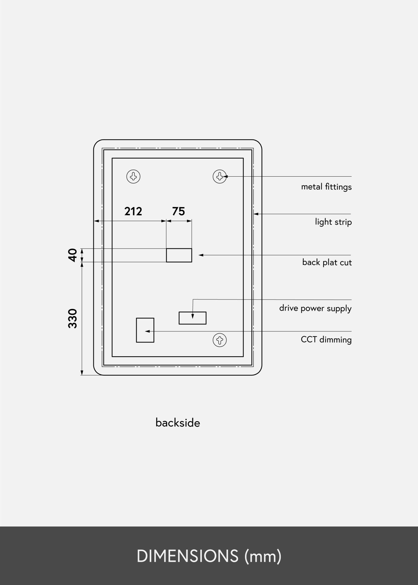 Elegantno ogledalo za kupaonicu duboko je samo 3 cm i mjeri 50x70 cm. Ogledalo za kupaonicu ima zidne nosače i može se montirati i horizontalno i vertikalno. Podesivo LED osvjetljenje i meki rubovi pridonose toplom i mekom osjećaju u prostoriji u kojoj se nalazi. Ogledalo je odobreno za kupaonicu. Ogledalo za kupaonicu namijenjeno je za stalnu instalaciju i spaja se na prekidač. Da bi ogledalo ispravno funkcioniralo, treba biti spojeno na običan prekidač, a ne na prekidač s prigušivačem.