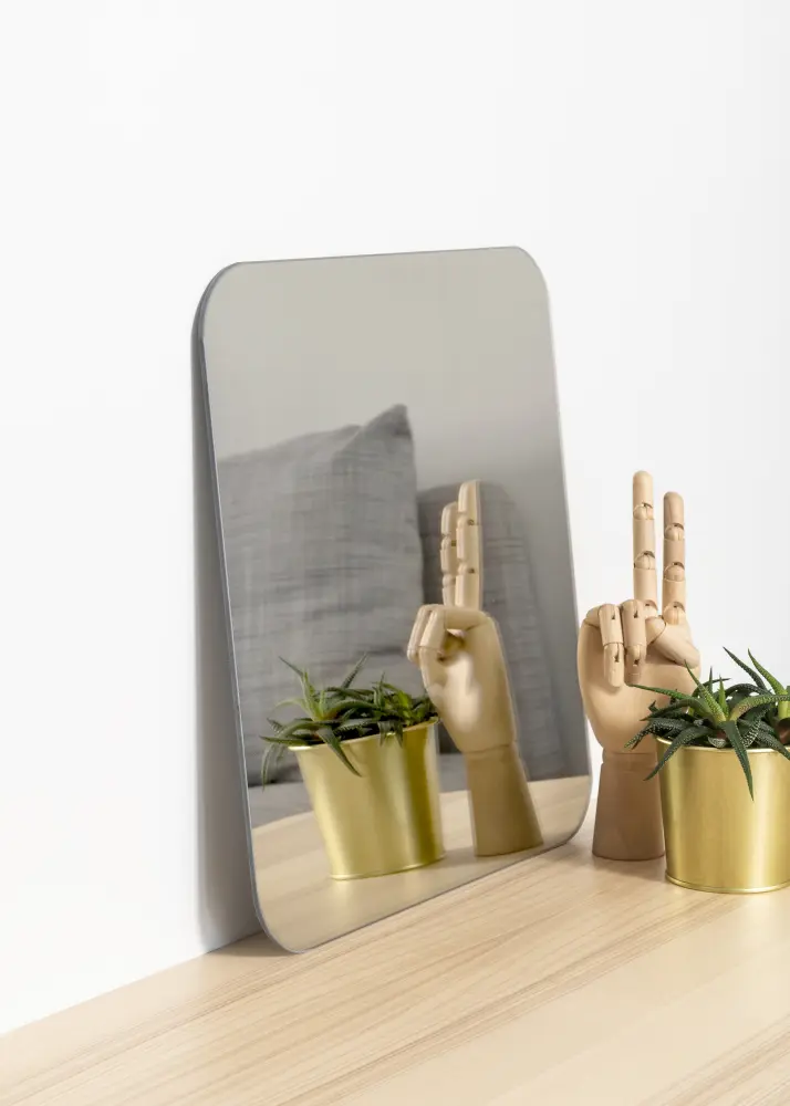 Ovo je Äetvrtasto ogledalo sa zaobljenim uglovima koje omekÅ¡ava dojam i daje mu elegantan osjeÄaj. Ogledalo je takoÄer samo 4 mm tanko i nije opremljeno okvirom, Å¡to mu daje minimalistiÄki izgled i omoguÄuje da se lako uklapa u bilo koji dom.