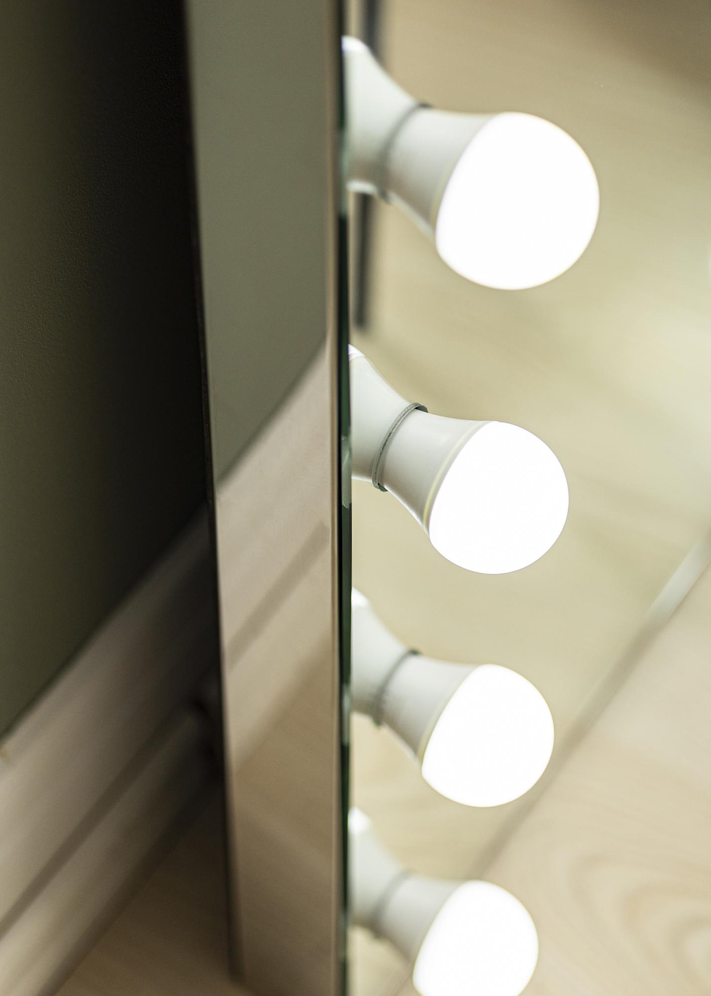 Ovo hodničko ogledalo ima integriranu LED rasvjetu u obliku 22 LED lampi koje lijepo uokviruju površinu za ogledanje i daju ogledalu luksuzni izgled. Na jednoj dugoj strani ogledala nalazi se mala okretna tipka kojom možete prigušiti rasvjetu do razine svjetline koja vam odgovara.
