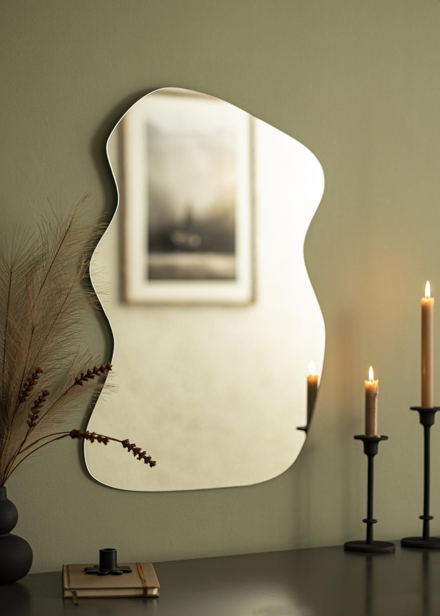 Ovo je izvrsno zidno ogledalo za vas koji tražite savrÅ¡enu kombinaciju klasiÄne elegancije i modernosti. Lagano valovit oblik daje ogledalu jedinstveni i trendovski izgled, dok odsutnost okvira dodaje dodatni dodir elegancije.