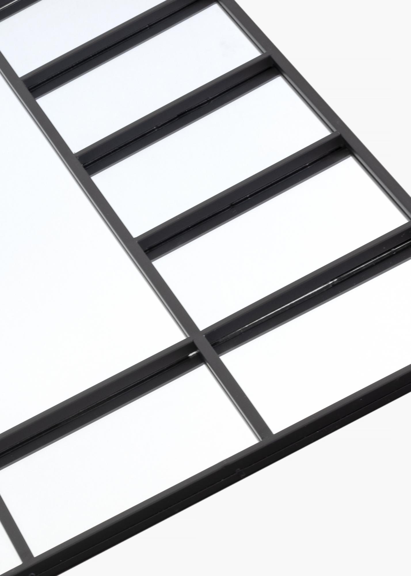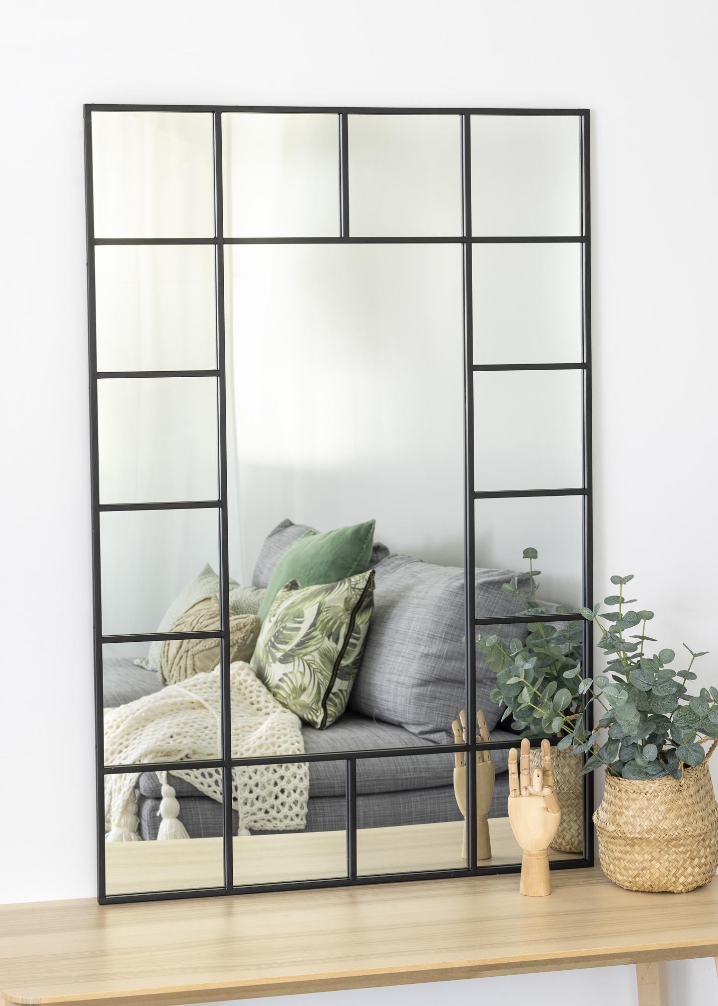 Ovo elegantno ogledalo iz KAILA-e ima dizajn koji podsjeća na lijep prozor. U ogledalu su različiti paneli koji lijepo uokviruju veću površinu ogledala u sredini. Panele lijepo uokviruju tanke crne linije od metala koje ogledalu daju pomalo industrijsku, ali istovremeno elegantnu karakteristiku. Zidni nosač za montažu na zid je uključen, ali ogledalo se također može lijepo nasloniti na zid. Ogledalo mjeri 80x120 cm.