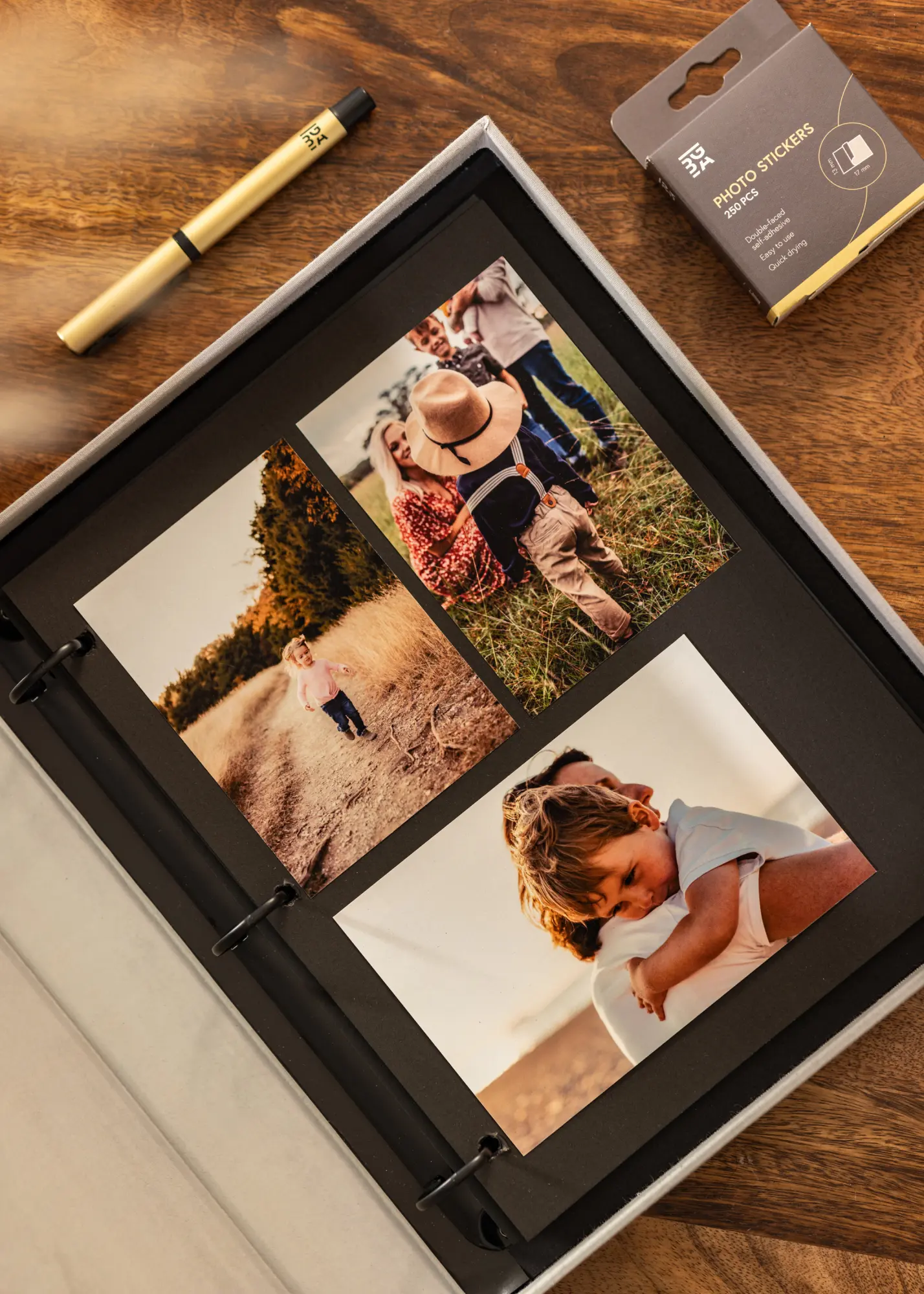 Album je dizajniran kao luksuzna kutija i dolazi u lijepoj sivoj nijansi. Unutra ćete pronaći diskretno otisnut uzorak na unutrašnjoj strani korica i 30 (60 stranica) crnih listova. Album je foto album za samostalno lijepljenje, što vam daje priliku da budete kreativni. Za one koji cijene izradu vlastitog foto albuma, naši albumi s praznim stranicama su najbolji izbor za oživljavanje vaših uspomena.