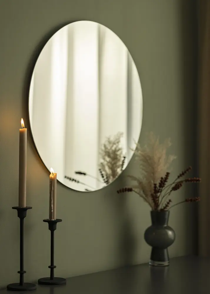 60 cm à okruglo ogledalo koje je dio serije okruglih ogledala od KAILA. Dostupno u Äak 13 veliÄina tako da možete pronaÄi onu koja savrÅ¡eno odgovara vaÅ¡oj sobi. Ogledalo je izuzetno tanko i elegantno te odgovara svim vrstama soba i stilovima ureÄenja.